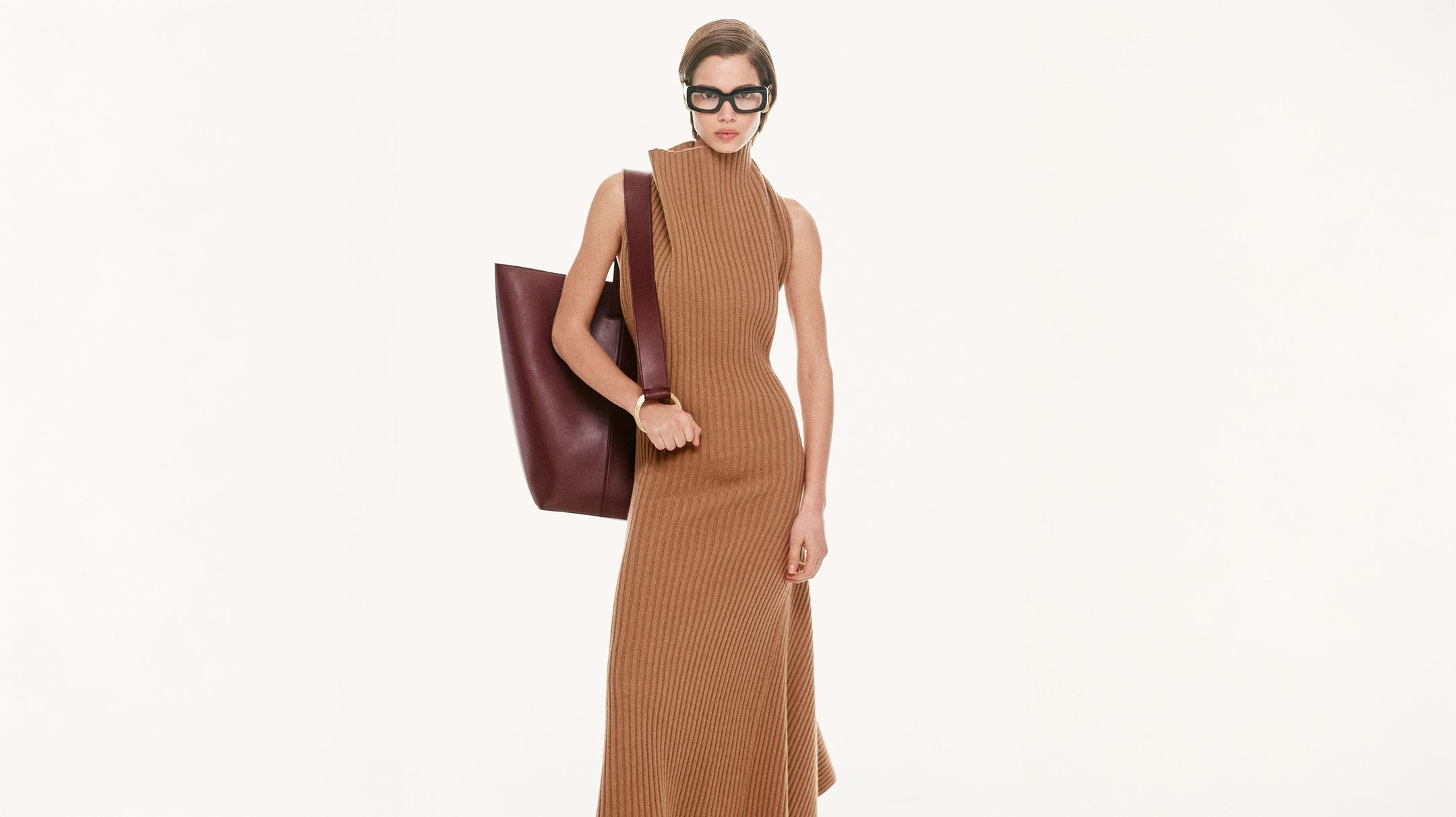 • Ribbed Midi Dress In Dark Camel