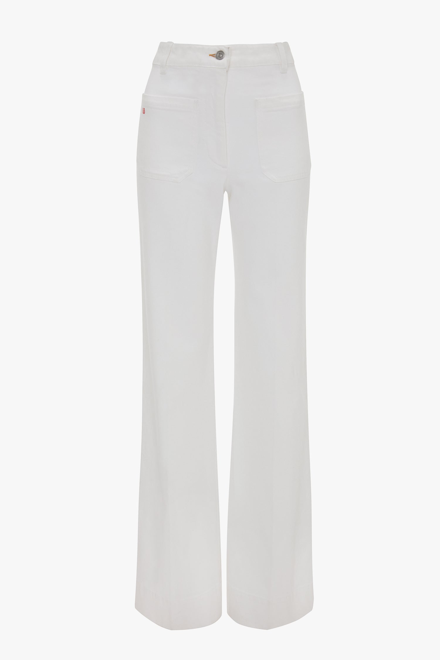 The house’s signature Alina Jean, with its high waist and wide leg, is presented in a cool shade of Washed White for the new season for wear-anywhere appeal. Crafted with a slight stretch for absolute comfort, it has retro-inspired front and back patch pockets and a branded leather patch at the waistband. Tobacco topstitching and red embroidered detailing adds visual interest and reflects the brand’s consistent attention to detail.