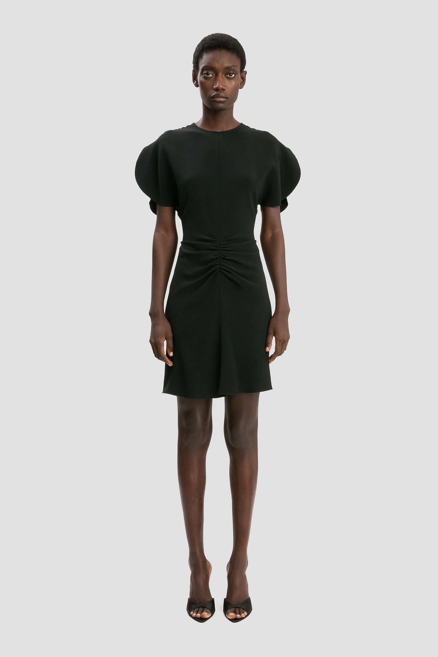 A playful reinterpretation of one of the house’s signature midi dresses, this Gathered Waist Mini has a ruched front, tulip sleeve detail and slight V-neck at the back. With a flattering waist and hip-hugging silhouette, as well as exposed seam details, it has a feminine but directional aesthetic.