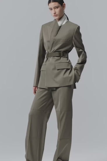 Crisp tailoring is a hallmark of the Victoria Beckham brand and the wool-blend Belted Tailored Jacket in Beige Melange brings a fresh perspective to the house’s edit. Finishing below the hip, it has double back vents, front welt pockets with flaps and a single chest welt pocket. Distinguished by a B belt trim, it exudes modern sophistication.