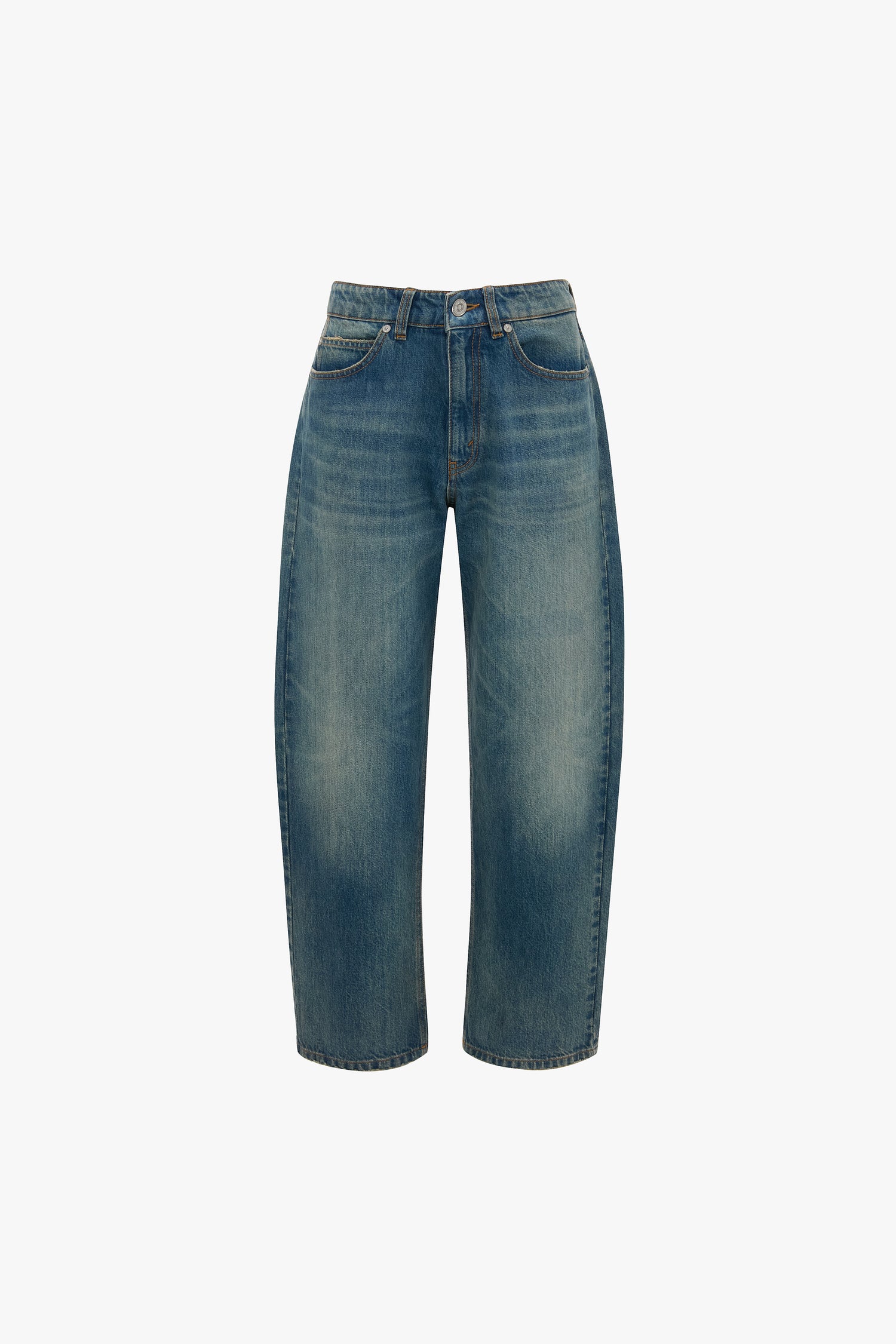 Presented in Washed Blue for the new season, the Bernie Jean has a mid-rise waist, straight leg and is crafted from 100% cotton for a true-to-size fit. Utilitarian details include branded denim shank buttons, branded rivets and a branded leather patch. An ankle-revealing hemline adds a feminine sensibility to the silhouette.