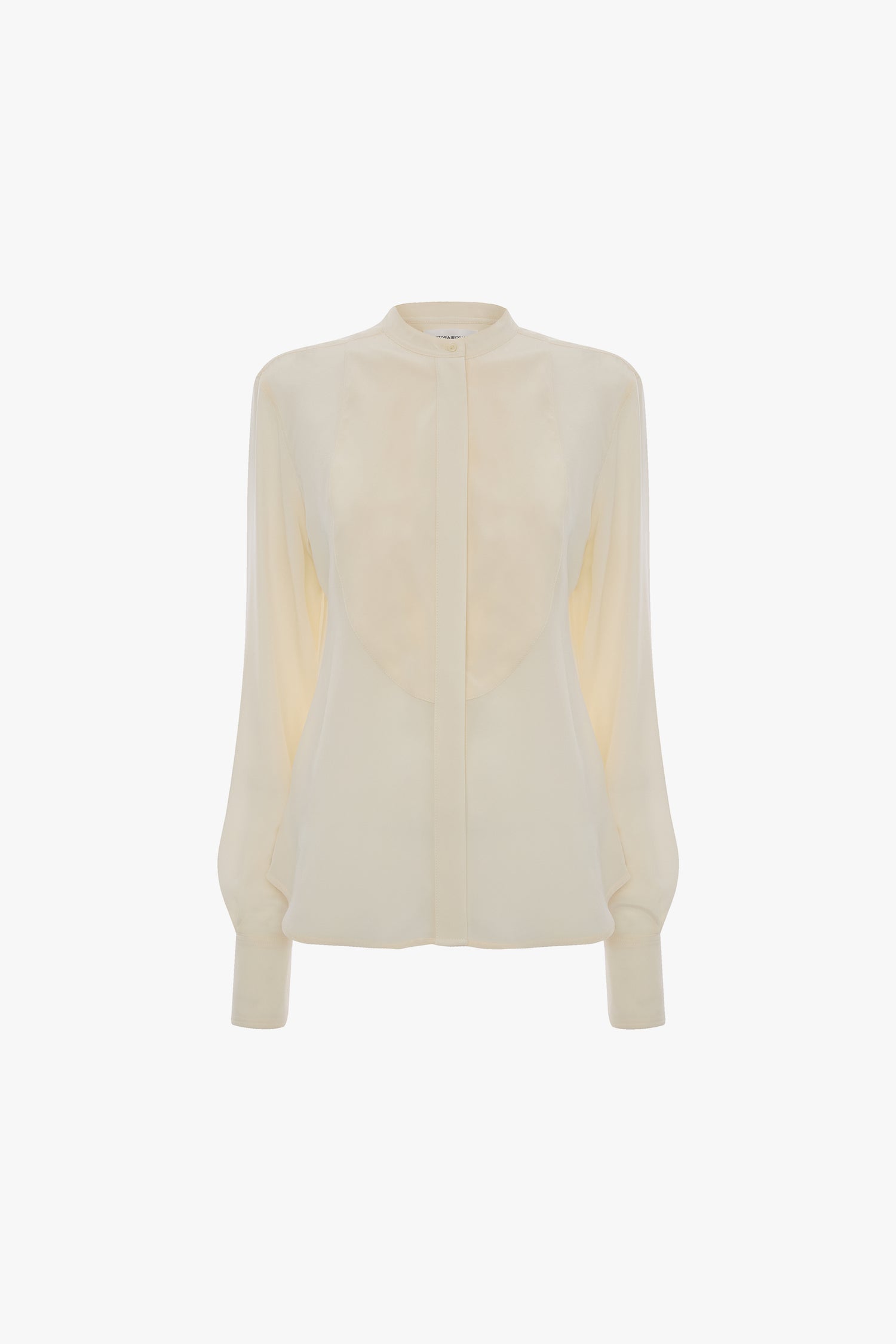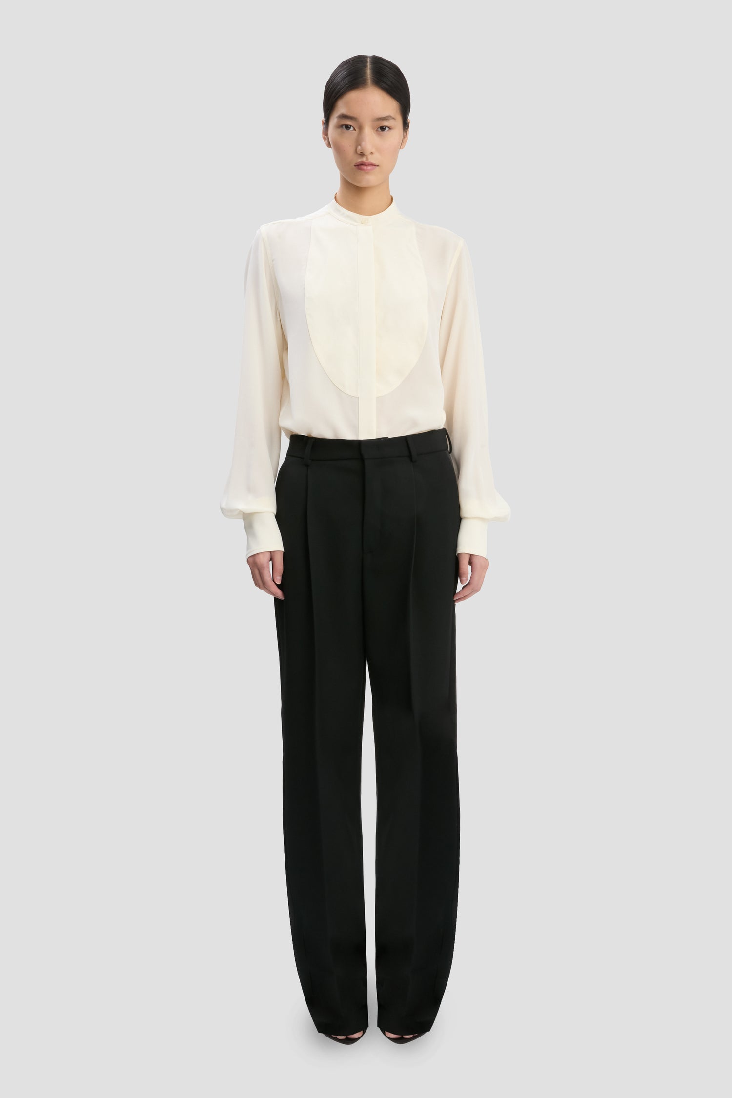 A fresh take on tuxedo style, the Bib Detail Shirt in Ivory is crafted from cotton poplin and designed with an oversized fit. Traditional design details include a front bib panel, back yoke detail and back button placket. A contrasting embroidered Victoria Beckham monogram completes the look.