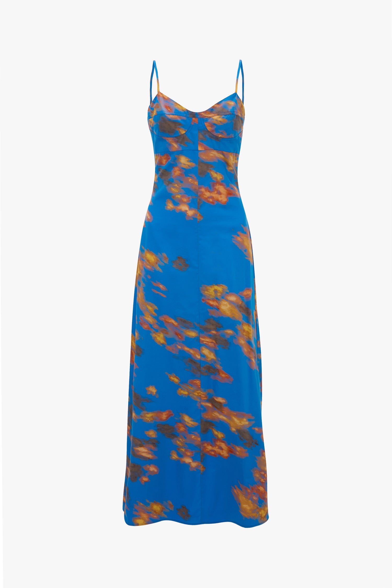 Cami Fit And Flare Midi Dress In Blue Abstract Floral Print
