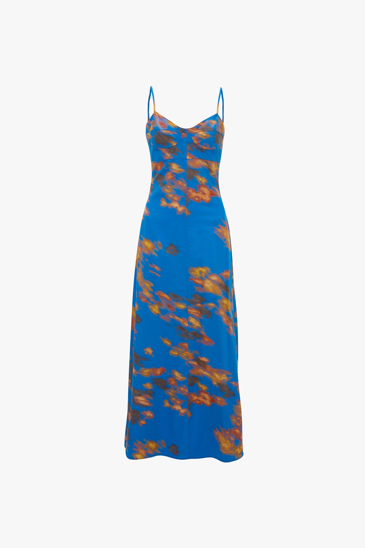 Cami Fit And Flare Midi Dress In Blue Abstract Floral Print
