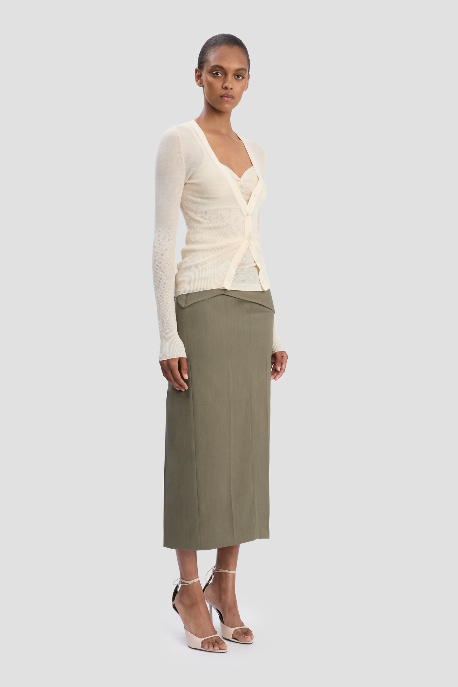 A fine-gauge pointelle knit and tender Pale Rose colourway bring a feminine sensibility to this neat-fitting Cardigan. Long sleeves, ribbed cuffs and a low V neckline create a classic silhouette, while tonal button closures keep the look understated.