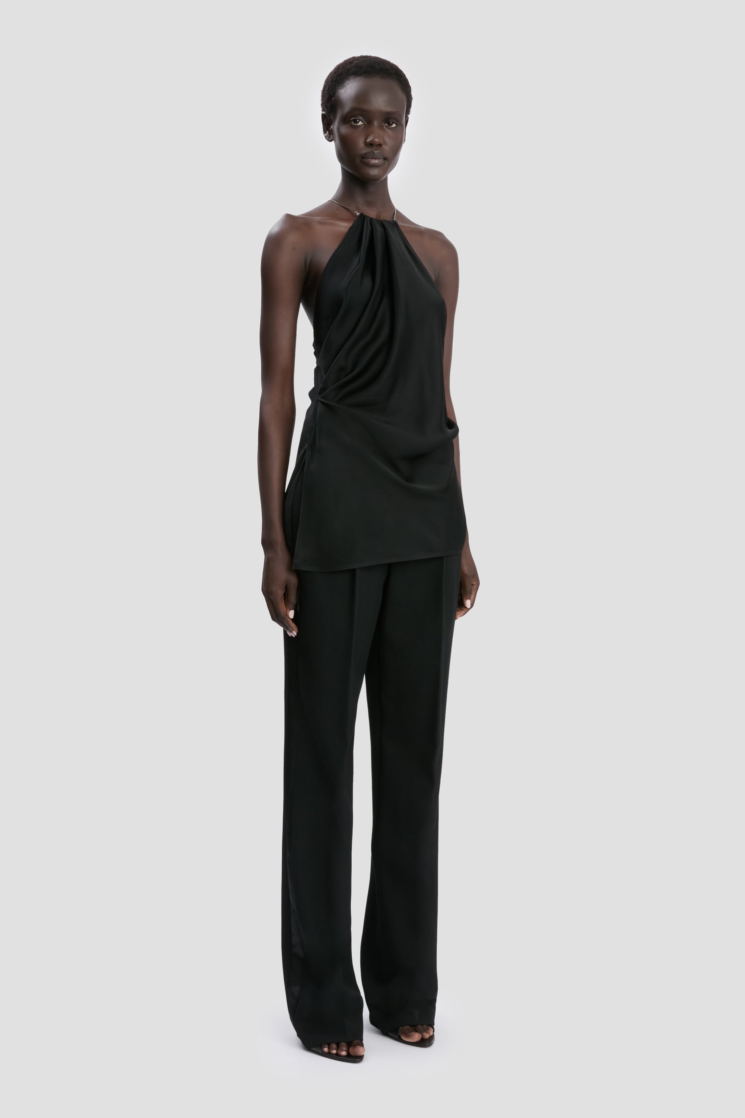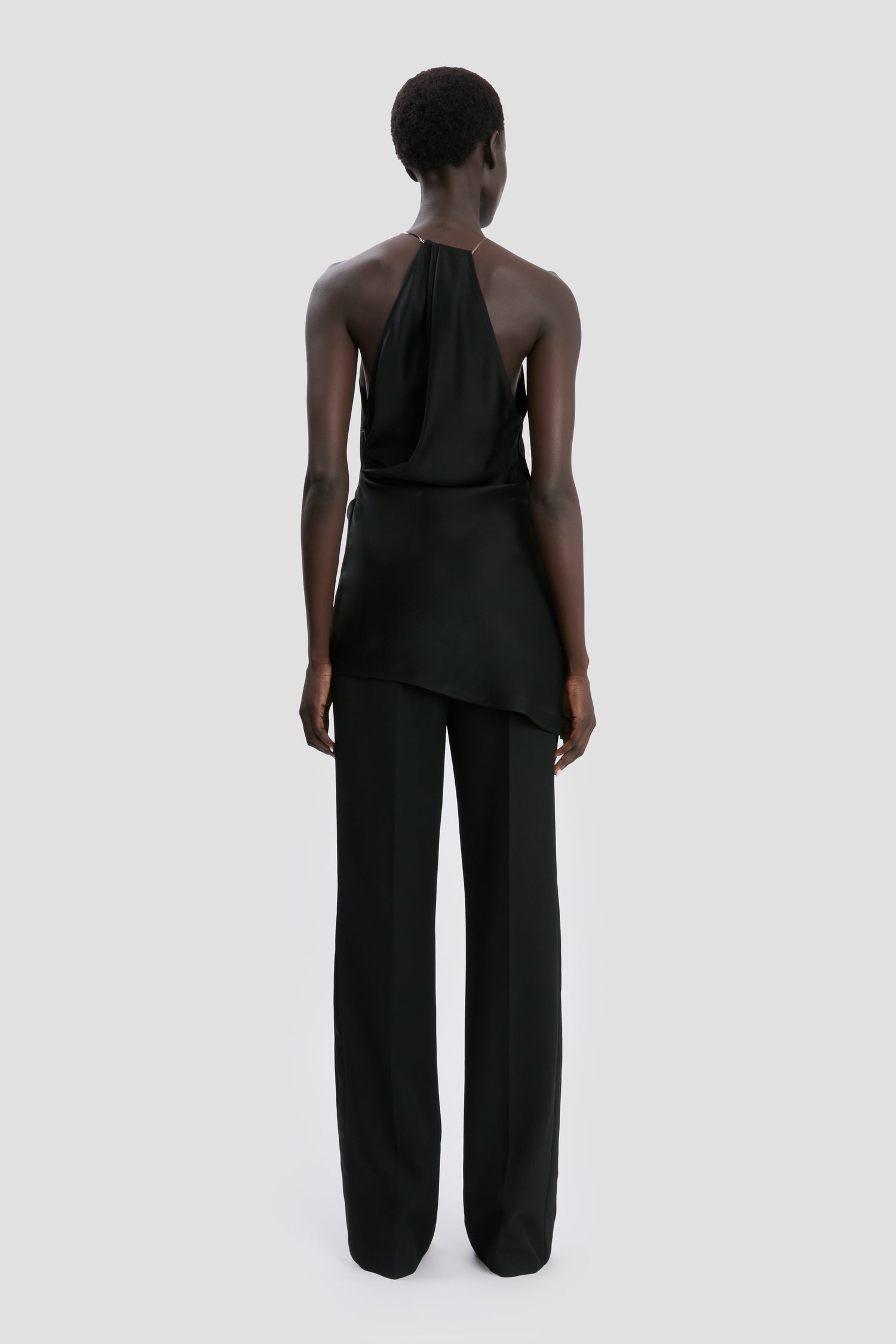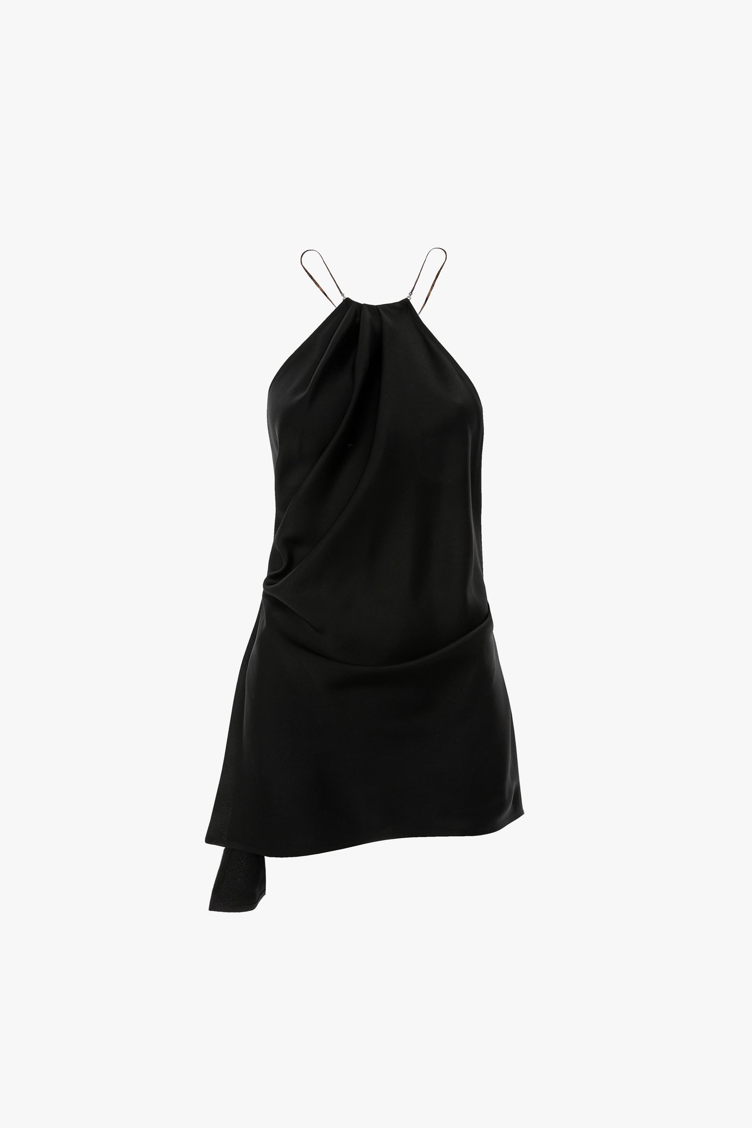 A traditional halterneck style is elevated with distinctive silver chain straps. The Chain Cami Top also has a tactile pleated neckline and waist and playful asymmetric hemline, imbuing it with a subtle sensuality.