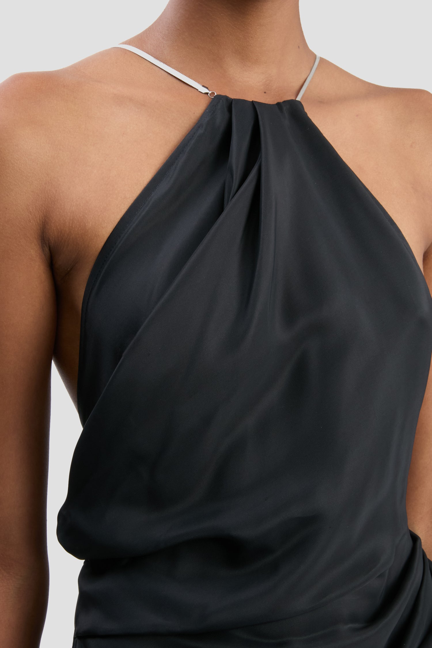 • Halter neckline with chain straps