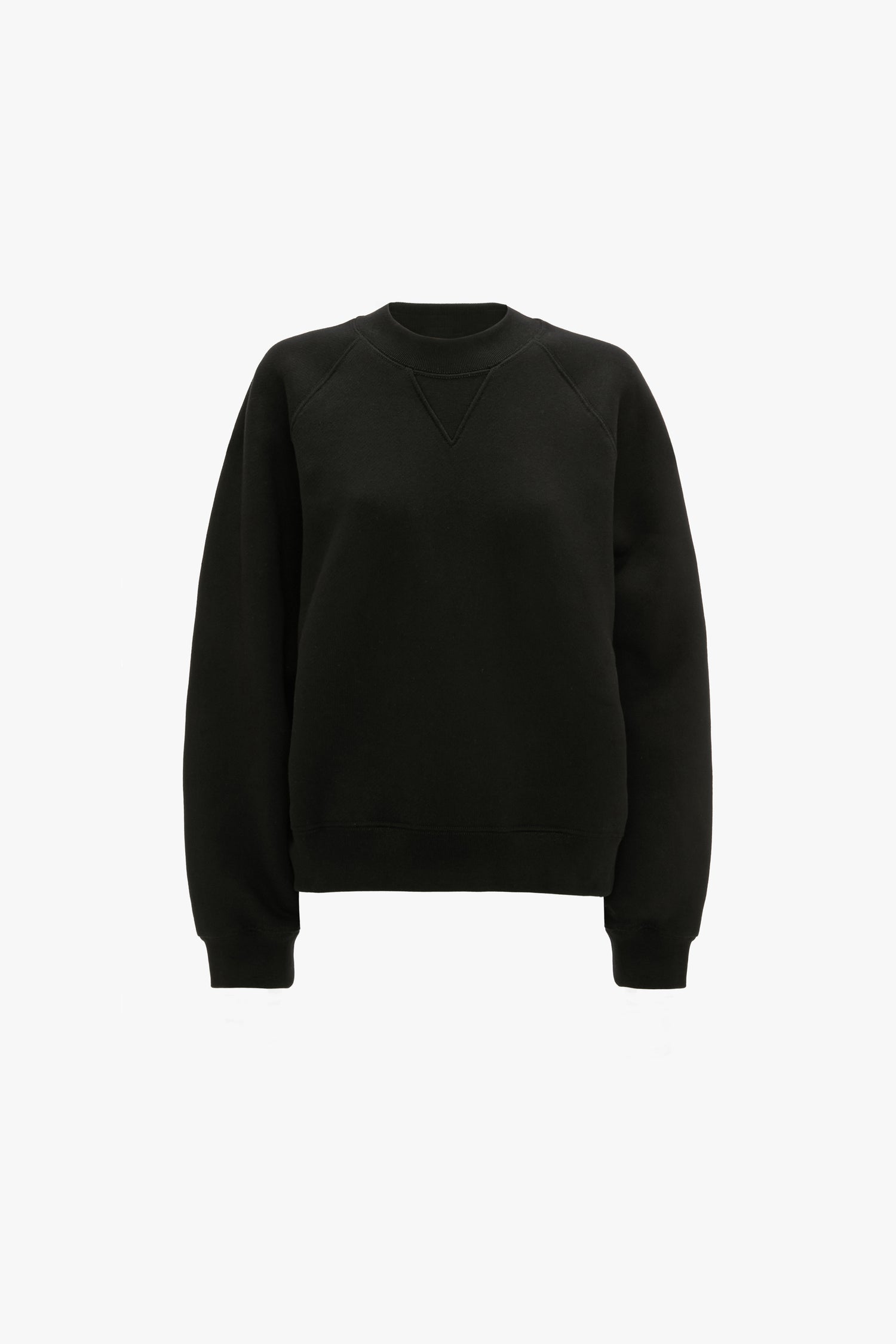 A boxy fit brings a boyish undertone to the Crew Neck Raglan sweatshirt. Presented in utilitarian Black and crafted from a heavyweight fleeceback cotton jersey, it has a classic crew neck with a triangle insert for visual interest. A ribbed hemline and cuffs and a tonal embroidered Victoria Beckham monogram at the back of the neck complete the look.