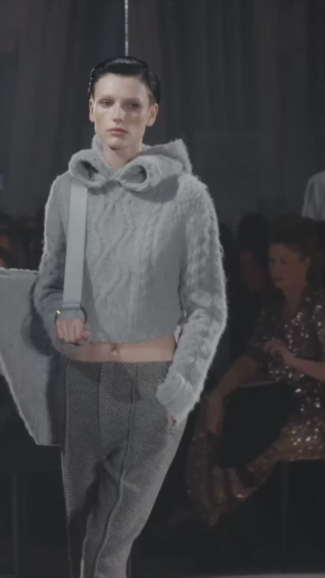 A statement piece from the Autumn/Winter runway, the Cropped Cable Jumper in Grey Melange has a sculptural rolled collar with a knitted hood, combining contemporary and casual design codes beautifully. Crafted from a lambswool-alpaca blend with a cable-stitch design, it has a cropped boxy fit and a ribbed hemline and cuffs. The house’s signature embroidered Victoria Beckham monogram completes the look.