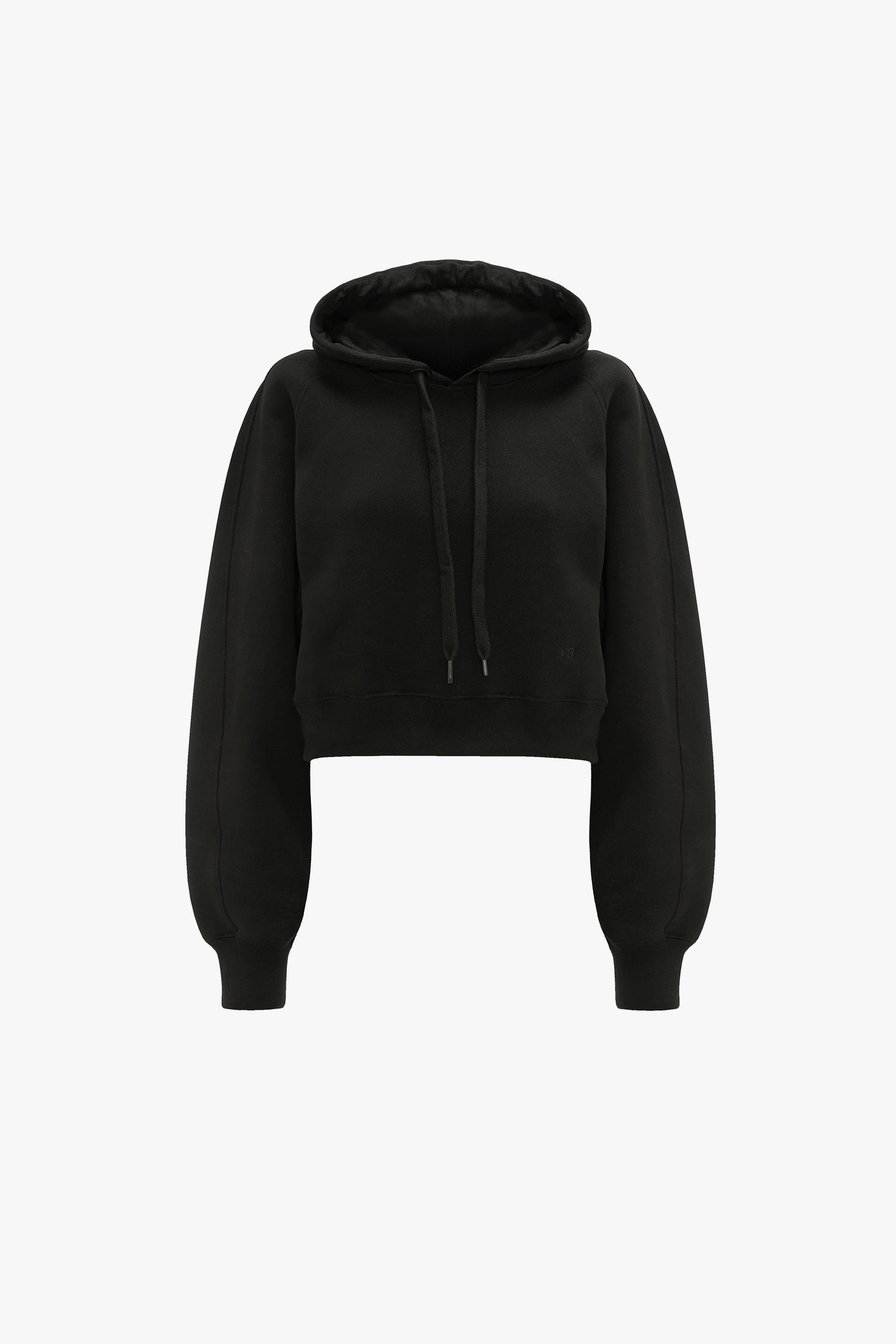 Crafted from a heavyweight fleeceback cotton jersey but designed with a waist-revealing silhouette, the Cropped Raglan Hoodie brings a feminine sensibility to traditional athleisure wear. Practical detailing includes a hood with drawcord, raglan sleeves and a ribbed hemline and cuffs, while a tonal embroidered Victoria Beckham monogram at the left hem adds a discrete flourish.