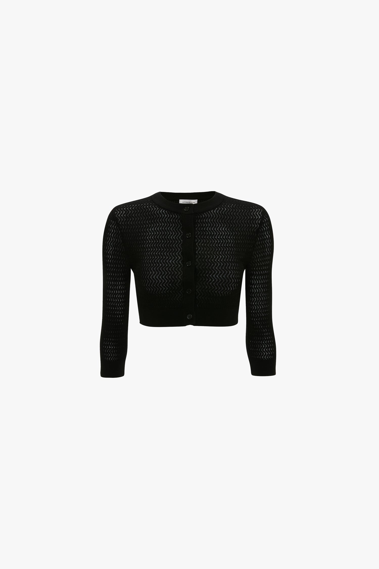 Unapologetically feminine, the Cropped Sleeve Cardigan has a figure-flattering silhouette and an attractive textured zig zag stitch. Ribbed trims at the cuffs and hemline add further tactility and a traditional button-front placket completes the look.