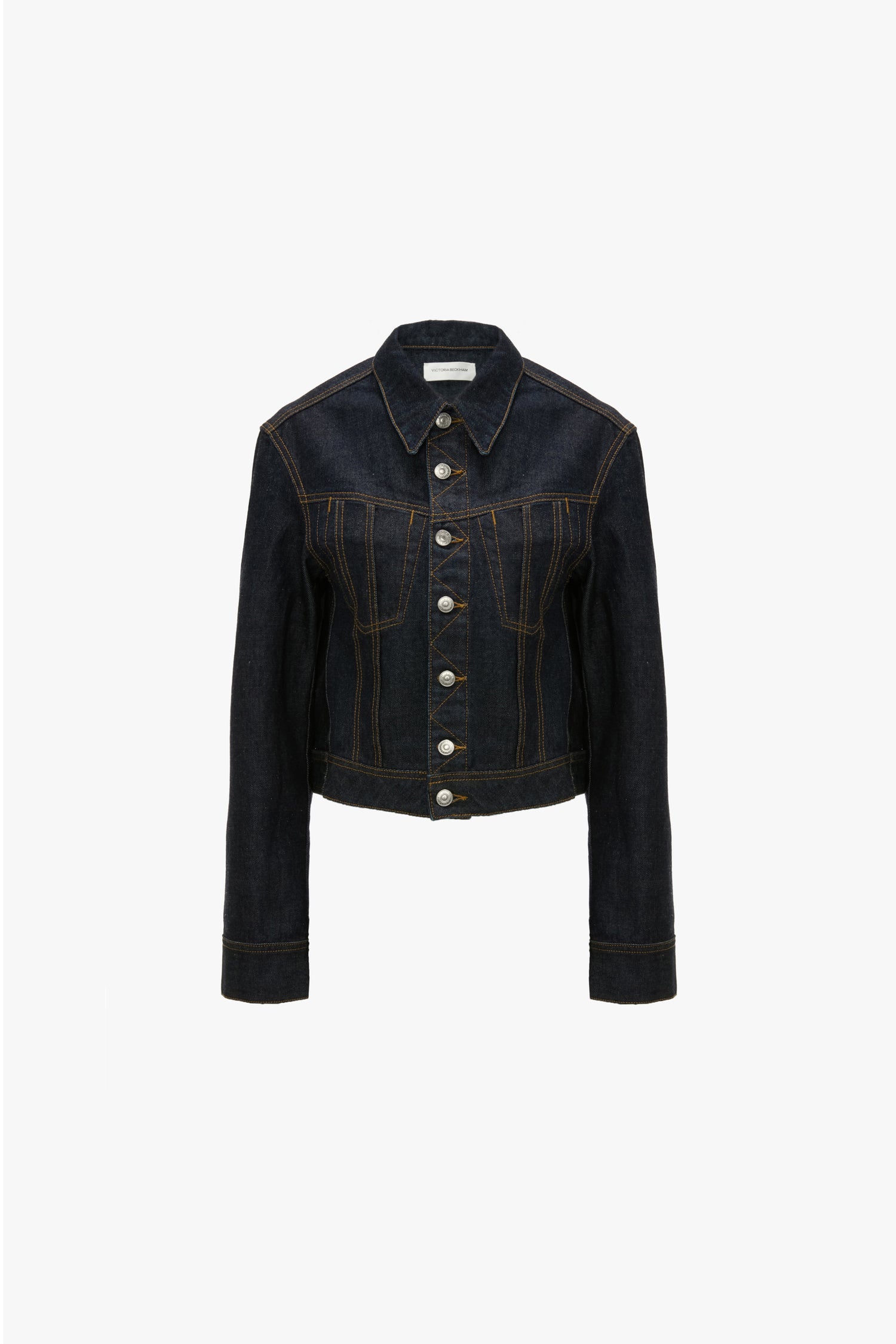 The Denim Jacket in Light Rinse plays with silhouette proportions, contrasting extra-long sleeves with a cropped hemline. Designed with a neat fit, it has a traditional collar and front placket fastening, branded denim shank buttons and tobacco topstitching. Crafted from a non-stretch, mid-weight denim, it blends masculine and feminine references for a fresh take on a wardrobe classic.