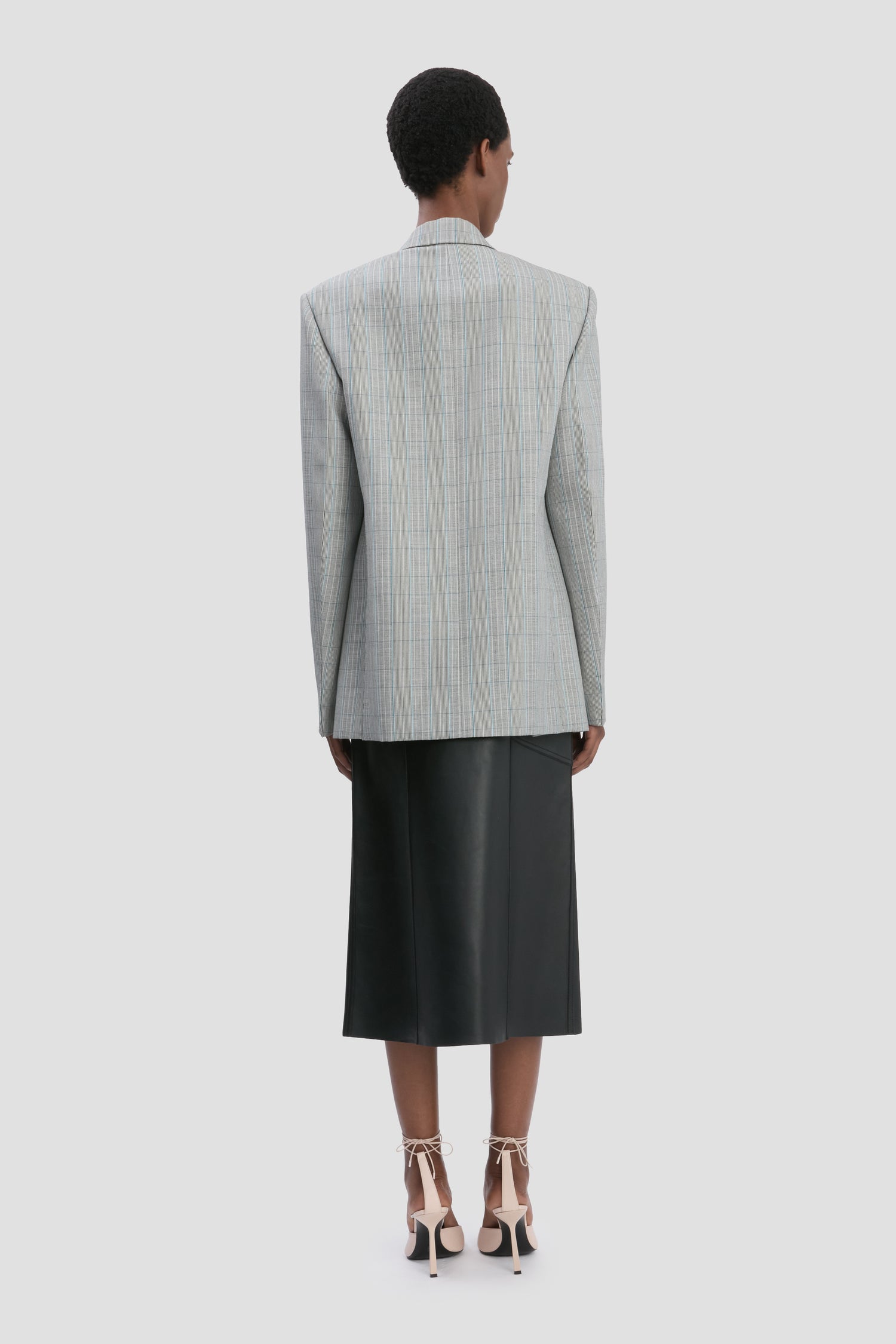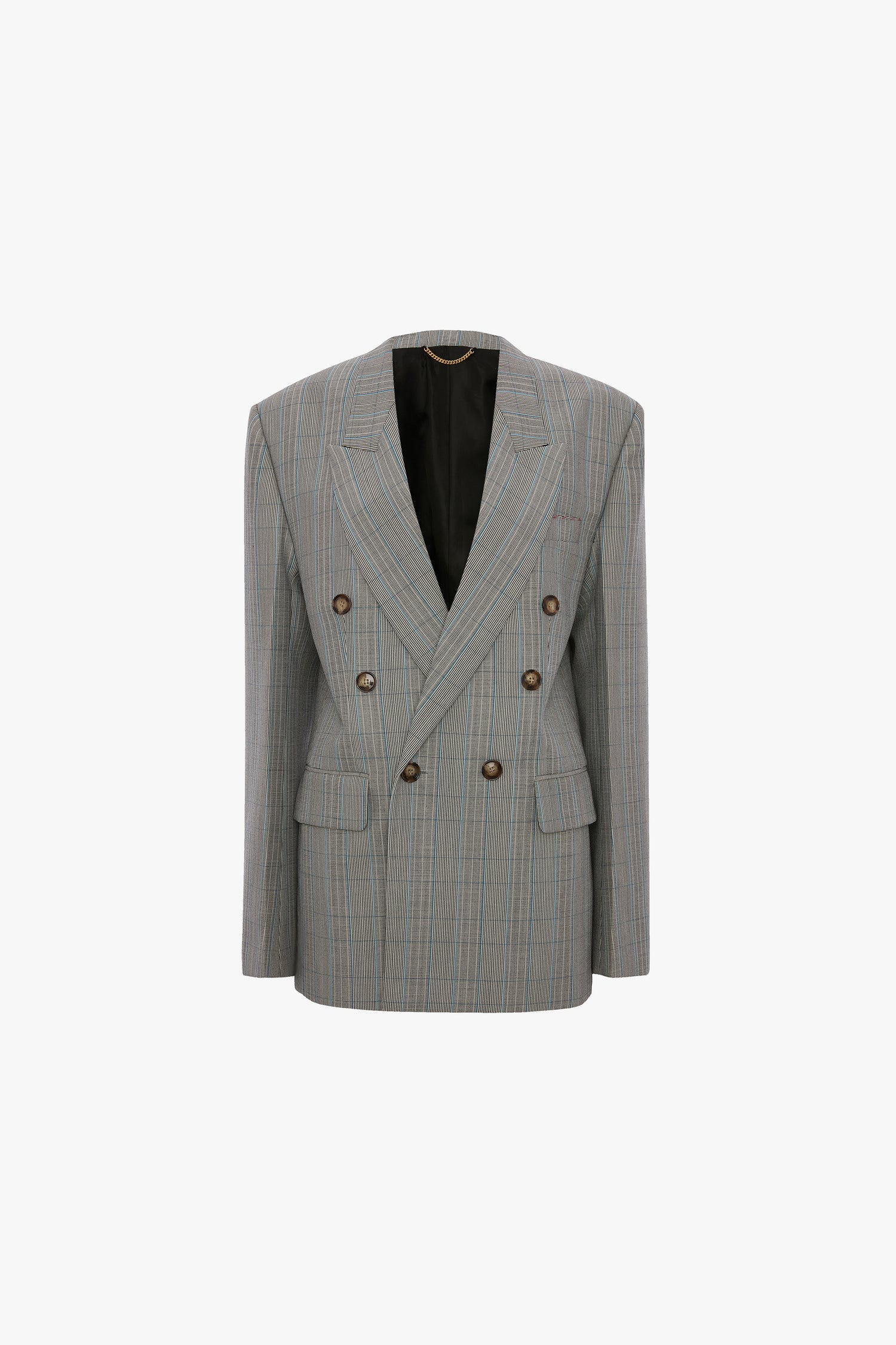 Presented in a Blue-Grey check and meticulously crafted from 100% wool, the Double Breasted Tailored Jacket has an oversized fit and a below-the-hip hemline. Classic front jet pockets with flaps, a welt chest pocket and back double vents complete the look.