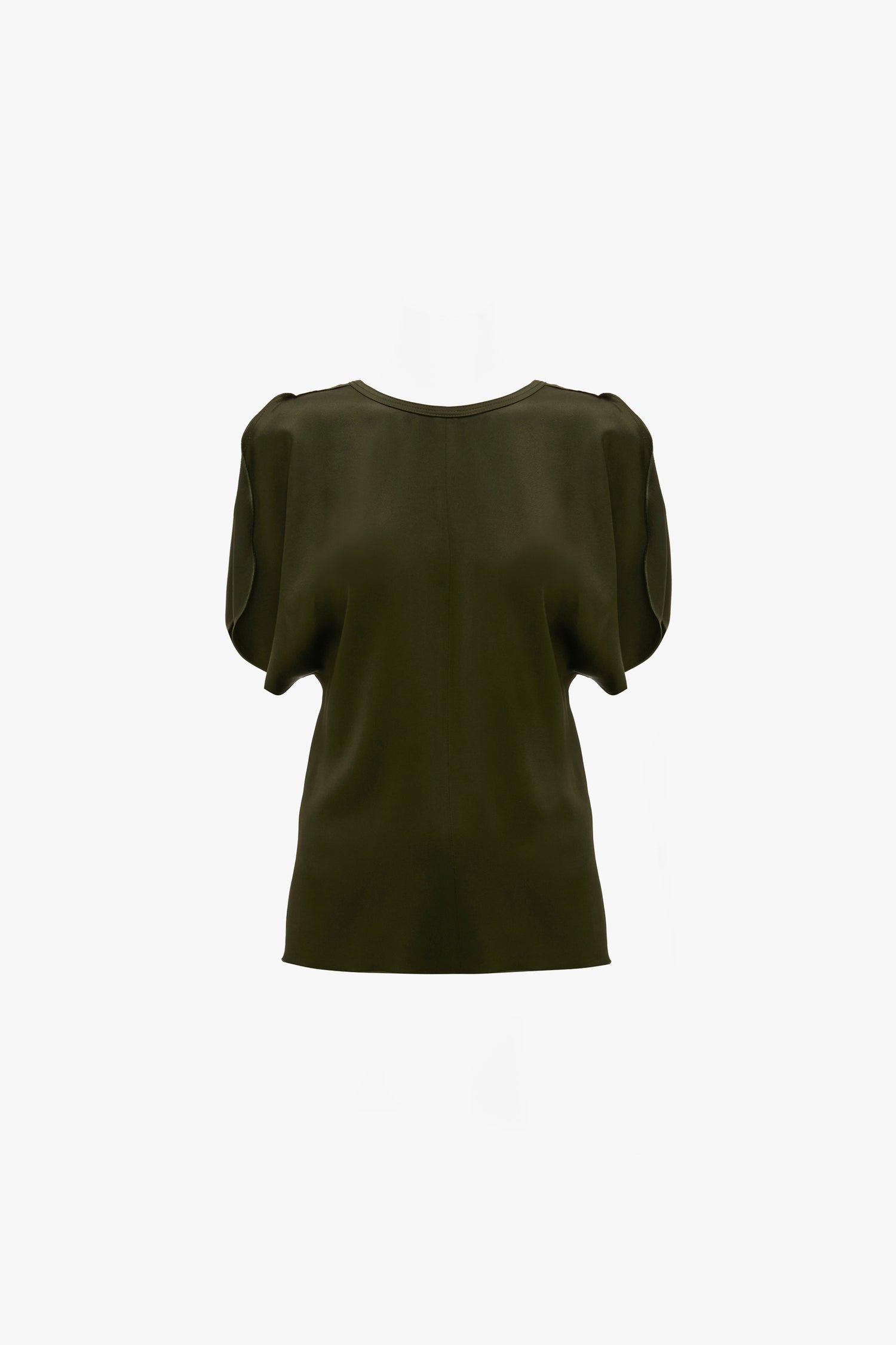 With a demure round neckline, pretty draped sleeves and modest over-the-hip hemline, the Draped Sleeve Top’s deep-V neckline at the back makes a surprisingly bold statement.