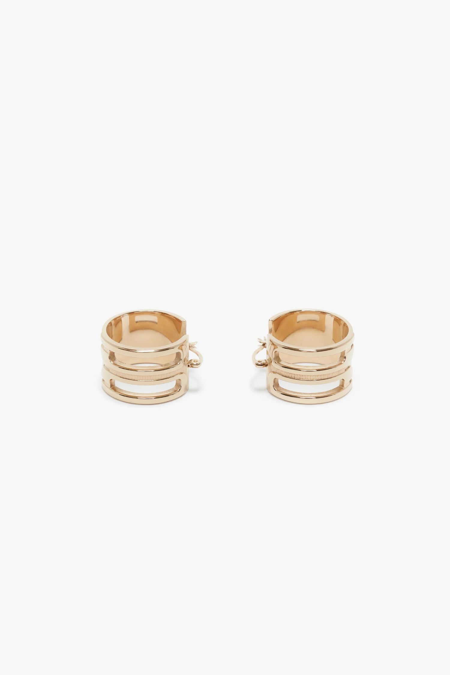 The house’s signature Frame detail elevates these gold-plated brass hoop earrings. Exquisitely crafted in Italy and engraved with the Victoria Beckham logo, they have a latch back closing for a secure and comfortable fit. Designed to elegantly frame the face, they are a wear-anywhere accessory.