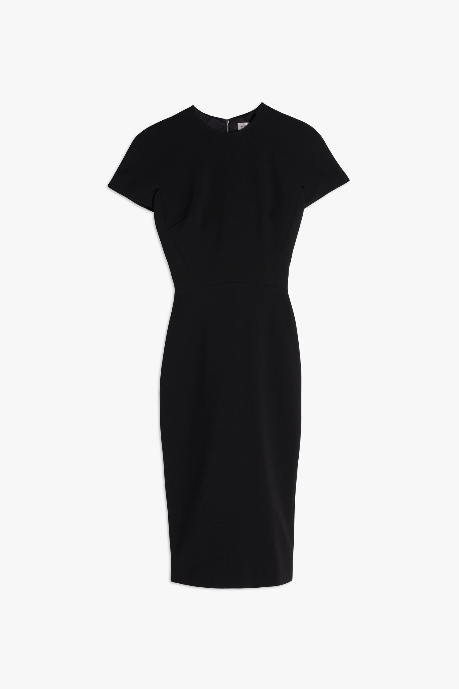 Inspired by the simplicity of a T-shirt, the Fitted T-Shirt Dress brings a fresh approach to one of the brand's signature fitted shapes. A matte, bonded crepe fabric offers a narrow, flattering fit, while a high neck and midi hemline create an elongated silhouette.