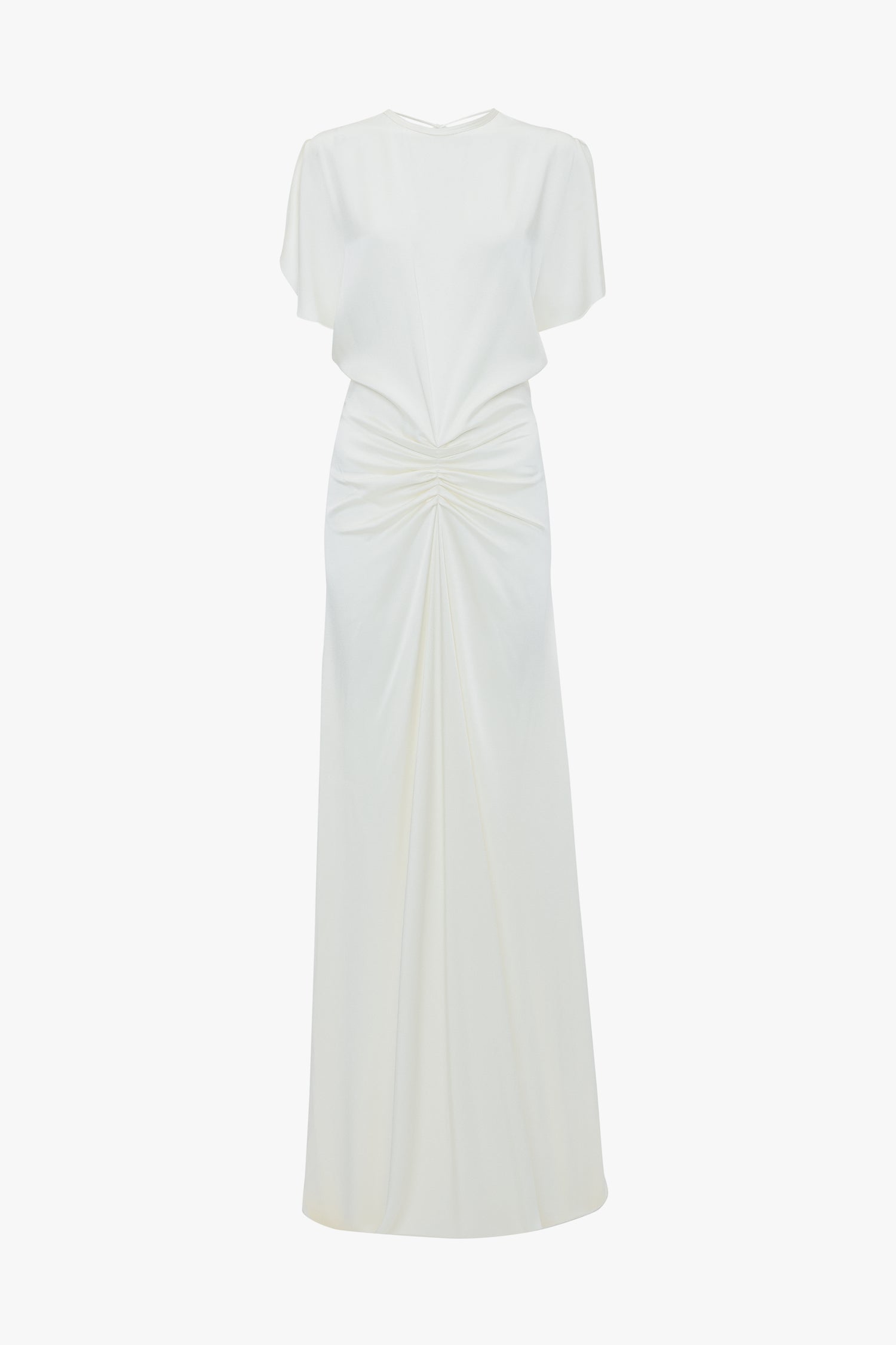 Reimagined in a nostalgic shade of Ivory for SS25, the Isabella Dress is a romantic proposition for the new season. Crafted from luxurious crepe back satin, it is fitted at the waist and hip for a flattering hourglass shape. A provocative open back design, elegant tie detail at the back of the neck and tactile pleating at the skirt add sensuous points of difference. A floor-pooling hemline adds a dramatic finishing touch.