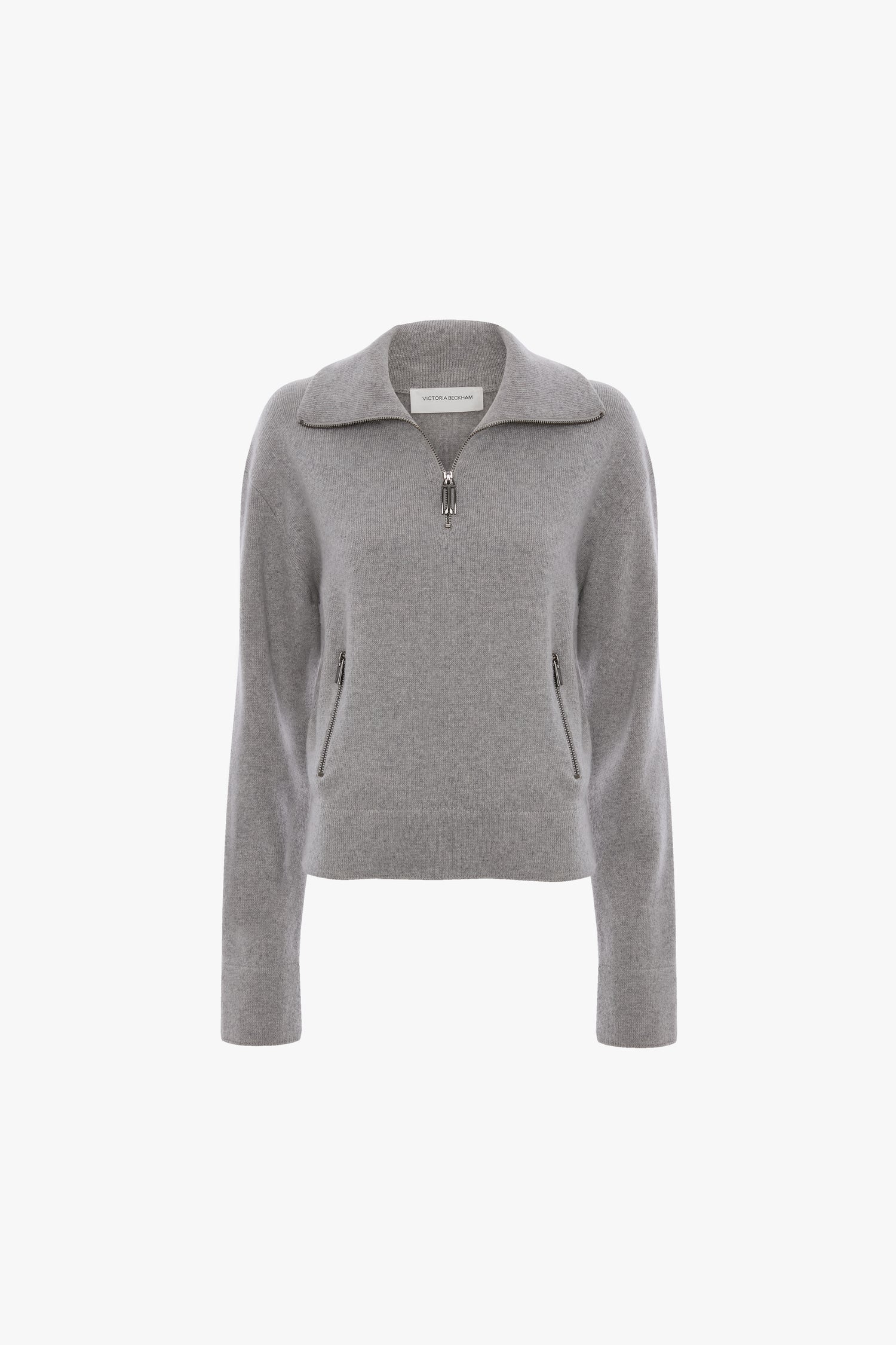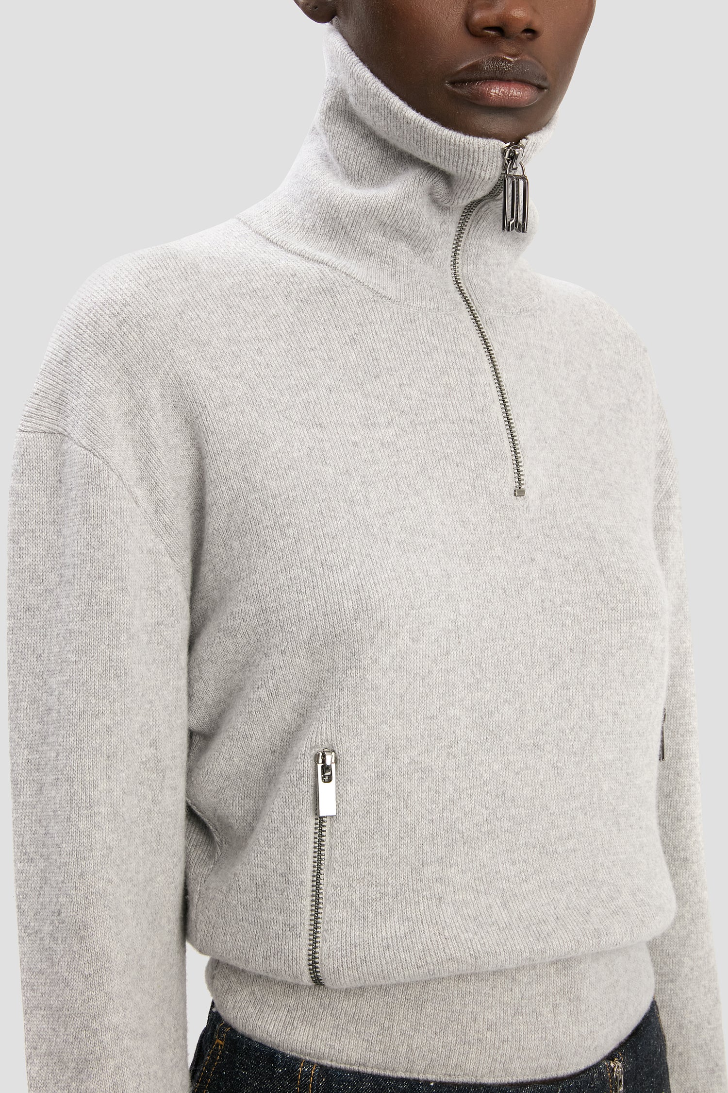The Half Zip Milano Jumper in relaxed Grey Marl has an athleisure wear sensibility that is fresh and modern. Designed with a quarter-zip neckline for versatile styling as a polo neck or V-neck, it is finished with a branded metal B puller and practical zip-front pockets.