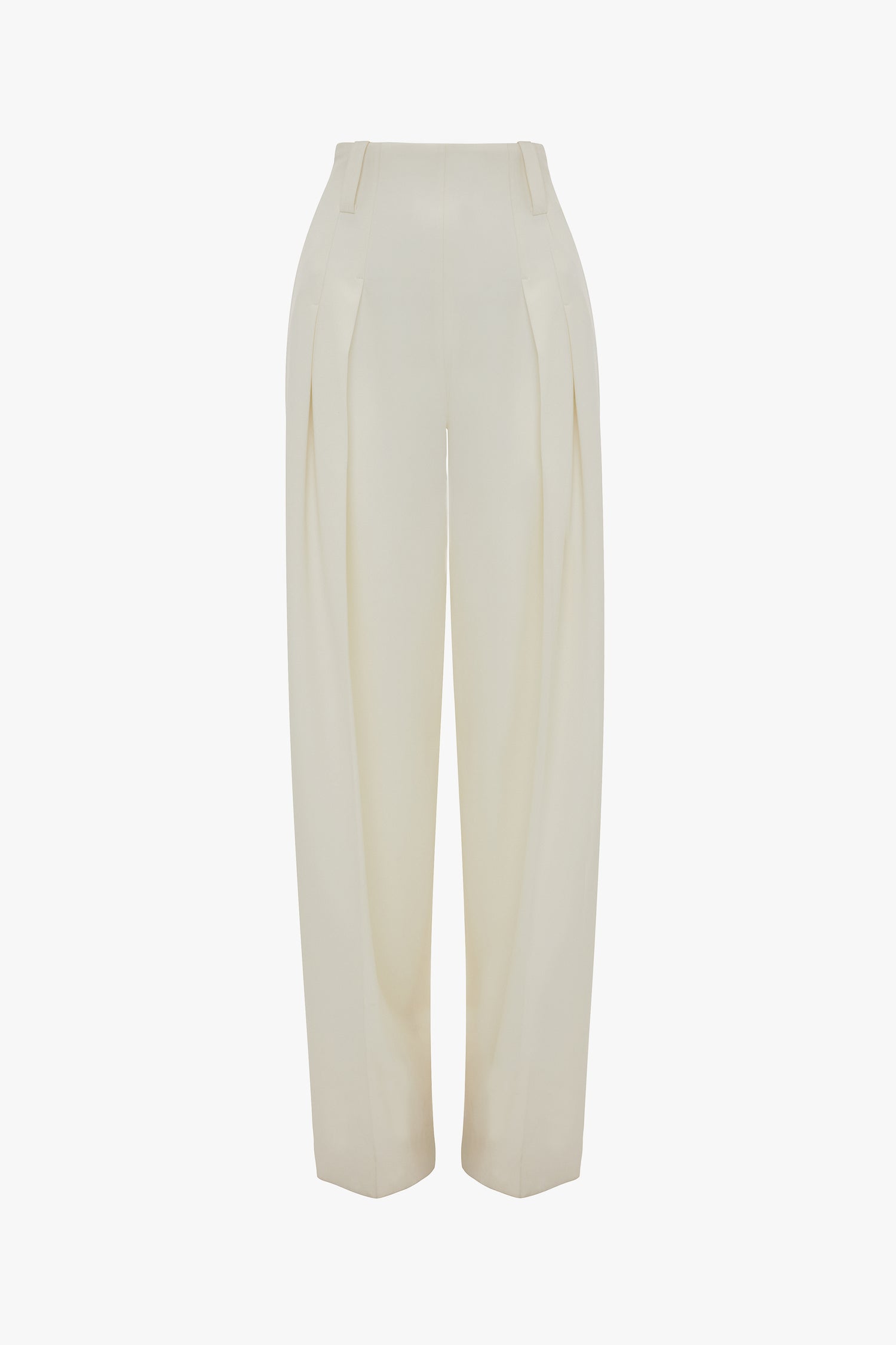 The High Waist Cinched Trouser embodies relaxed refinement. Characterised by a high waisted fit, pleats at the front and darts at the back, it has an informal silhouette perfect for transitioning from day to night. Lined with power mesh and finished with a side pocket inserted into the seam, it is presented in romantic Ivory for a subtly feminine point of difference.
