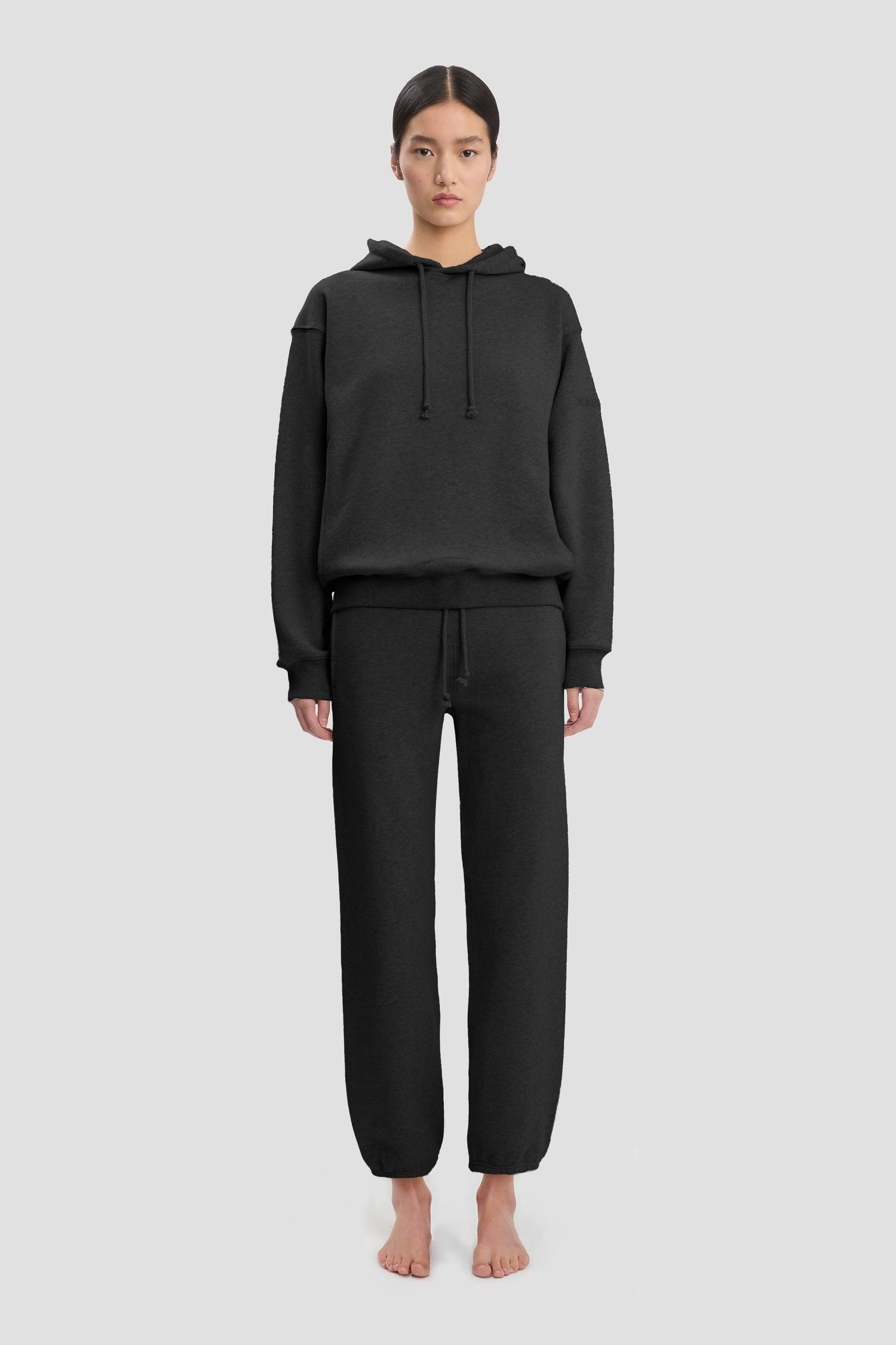 An elevated take on athleisure wear, the Logo Embroidered Hoodie in Black is crafted from 100% cotton for a super-soft finish. A drawstring hood and front pockets bring practicality and versatility, while a tonal Victoria Beckham embroidered monogram on one sleeve completes the look.