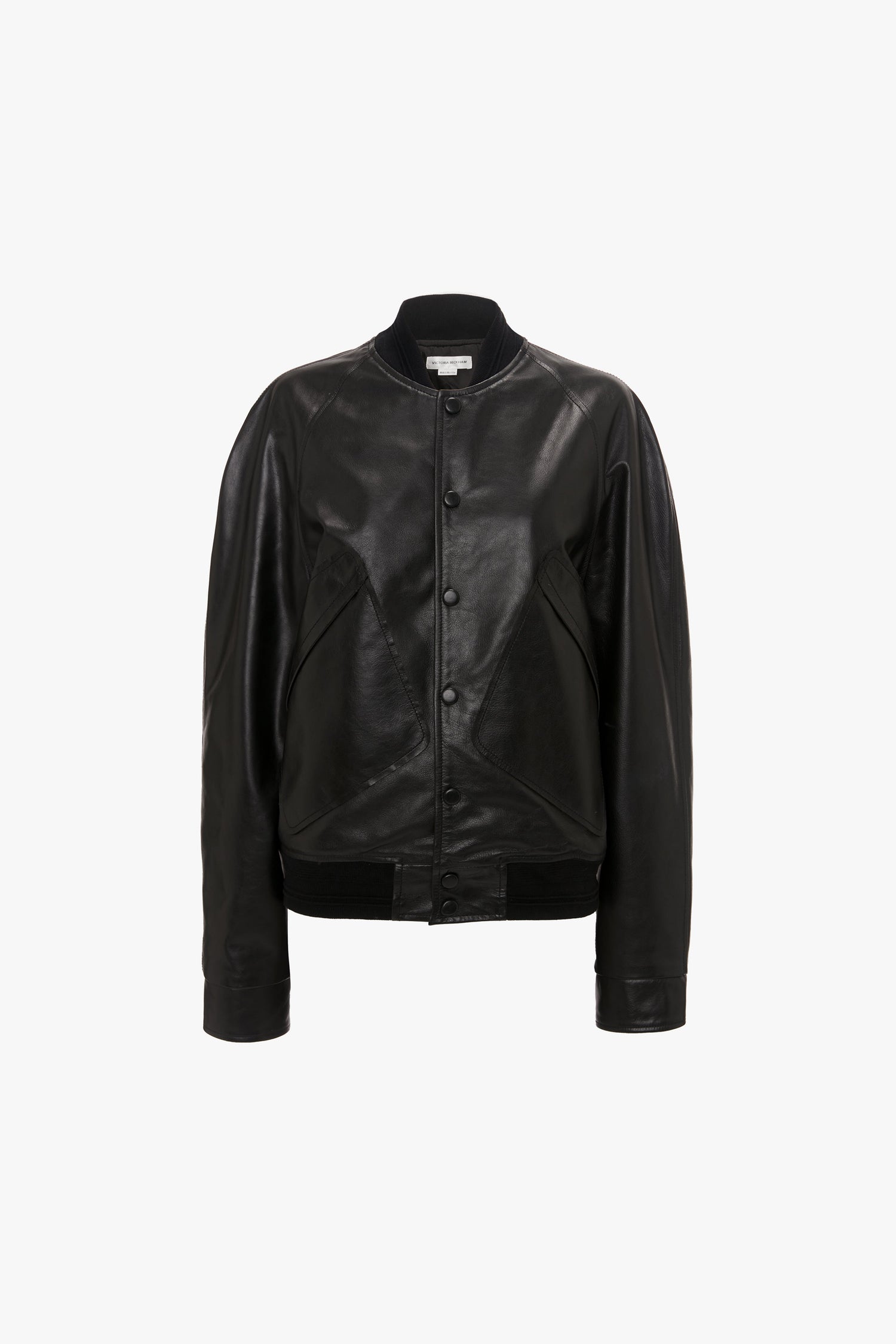 The traditional collegiate-style leather jacket is reimagined with the house’s signature sophistication in this Leather Varsity Jacket in classic Black. Crafted from tactile calf leather, it has raglan sleeves and ribbed detailing at the hemline, collar and inner cuffs. Leather covered snaps at the front and outer cuffs reflect the brand’s unerring attention to detail.