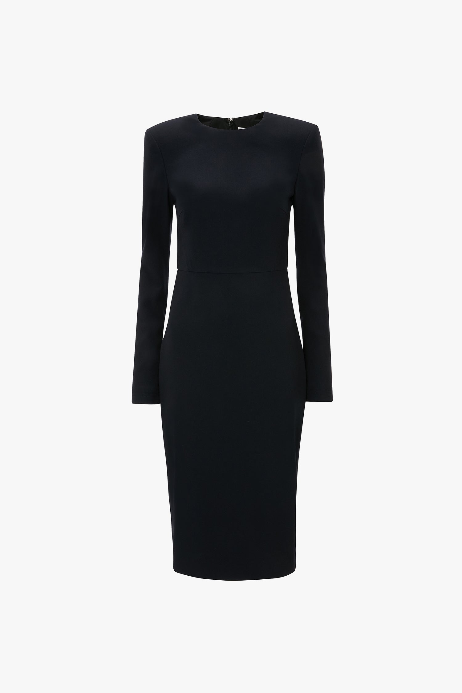 Understated elegance defines the house’s signature T-Shirt dresses. Exquisitely tailored with a modest round neckline and midi-length hemline, the Long Sleeve T-Shirt Fitted Dress has an hourglass shape with structured shoulders for a beautifully proportioned silhouette. Reimagined in luxurious Navy for the new season, it is finished with topstitch detailing.