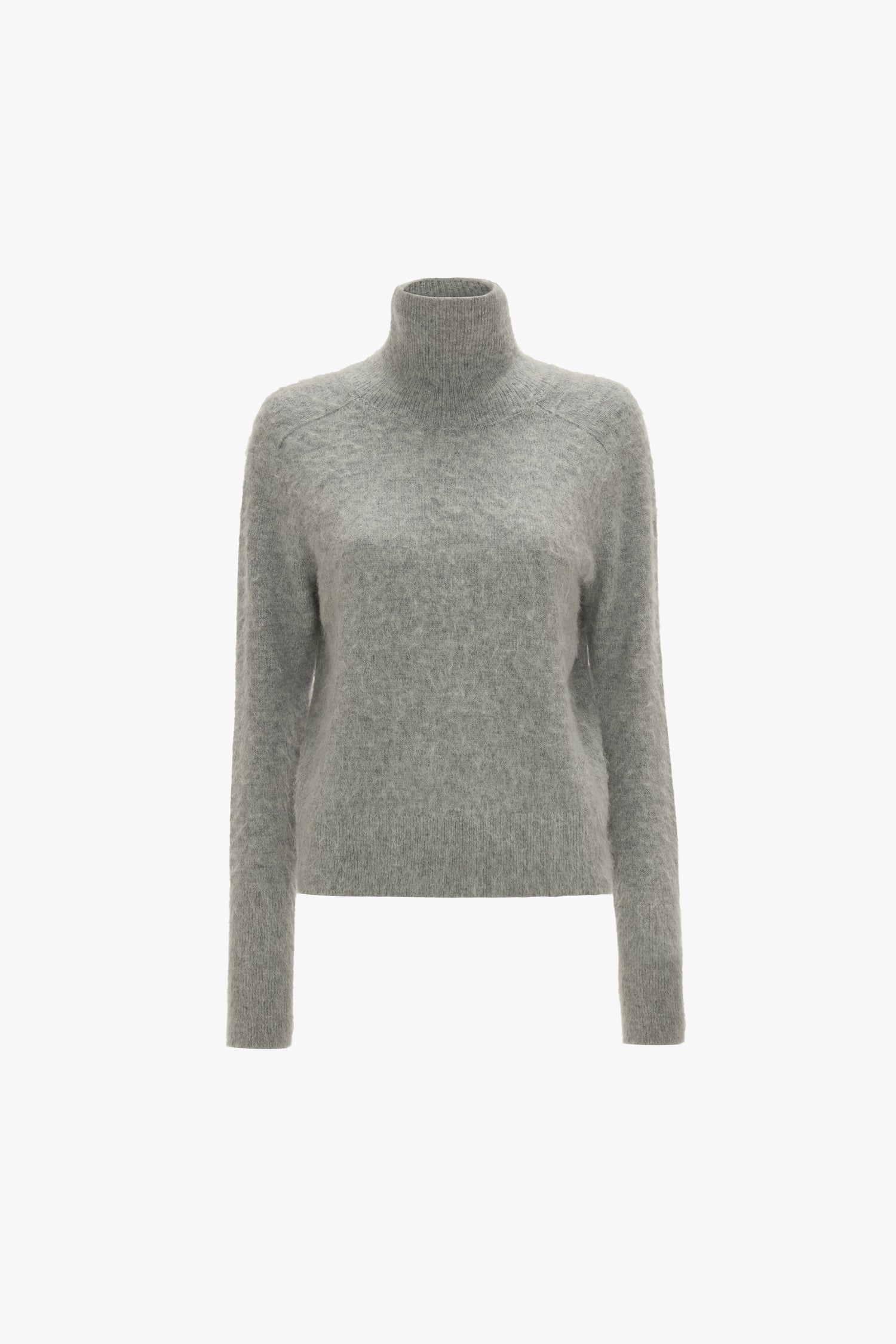 Elevating the everyday is part of the Victoria Beckham brand DNA. A super-soft lambswool-alpaca blend brings a luxurious tactility to the Marie Jumper in Grey Melange, while a saddle shoulder design adds a discreet but distinctive talking point. A ribbed hemline and cuffs and a contrasting embroidered Victoria Beckham monogram complete the look. With its high, roll-down neckline, the Polo Neck Jumper is a versatile wardrobe staple.