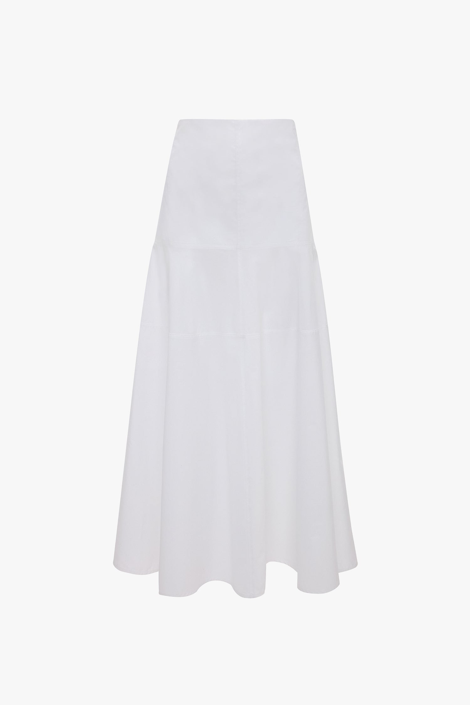 Crafted from cotton poplin, the Panelled Maxi Skirt is cleverly constructed from individual panels, with the top panel fully lined for comfort and modesty. Presented in crisp White for versatility, it has an ankle-length hemline that brings fluidity and ease of movement to the silhouette. Laid-back but luxurious, it embodies the house’s casual sophistication.