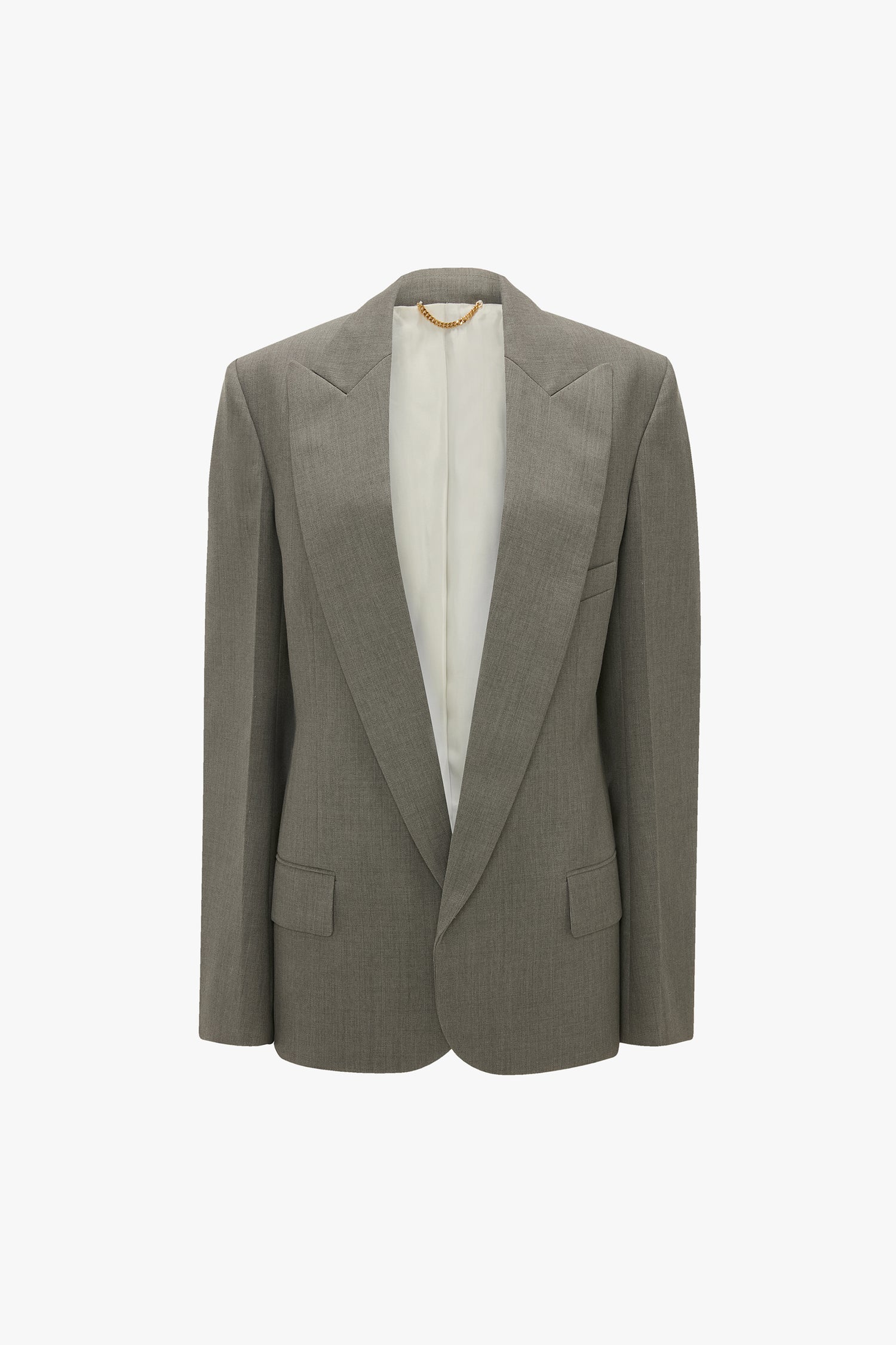 Sculptural long sleeves imbue this blazer with an architectural appeal. Impeccably tailored from 100% wool and fully lined, the Sculptural Sleeve Jacket has longer-length lapels and an oversized fit, imbuing it with a modern, relaxed attitude. Elevated design details include a three-hole button at each cuff with a contrasting white stitch, a centre back vent and a front flap pocket.