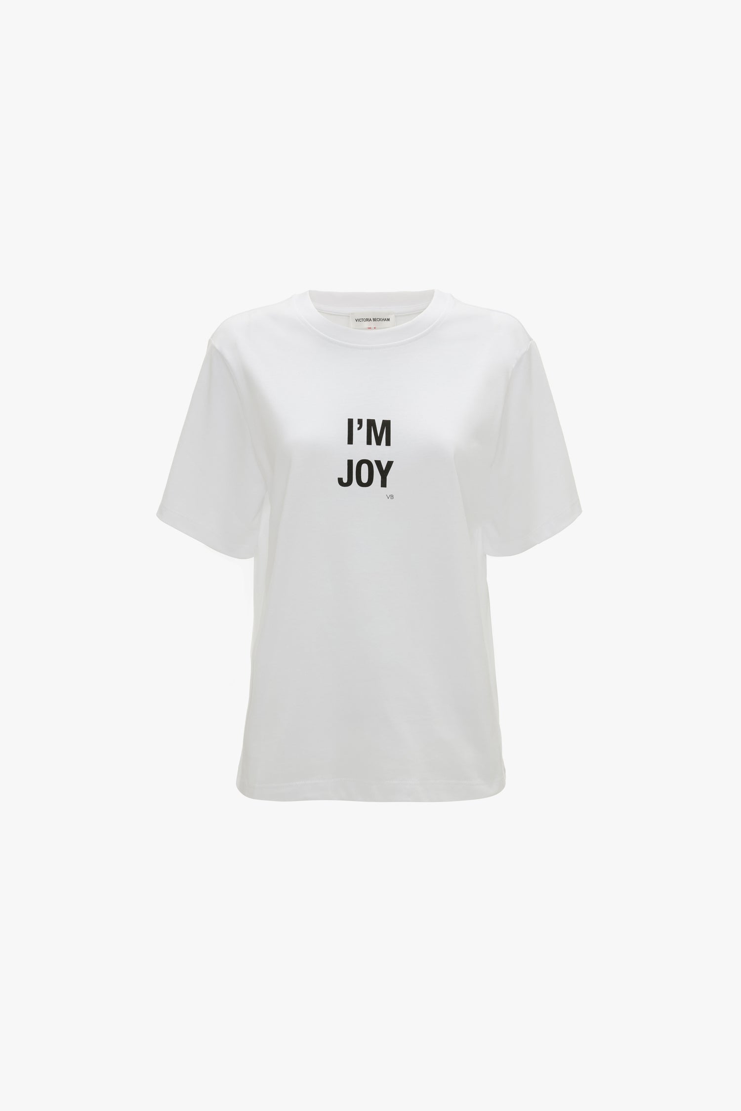 The ‘I’m Joy’ slogan T-shirt reflects the house’s tongue-in-cheek personality. Crafted from 100% organic cotton, it has a relaxed but polished Victoria Tee fit. A Victoria Beckham logo at the back of the neck adds a distinctive finishing touch.