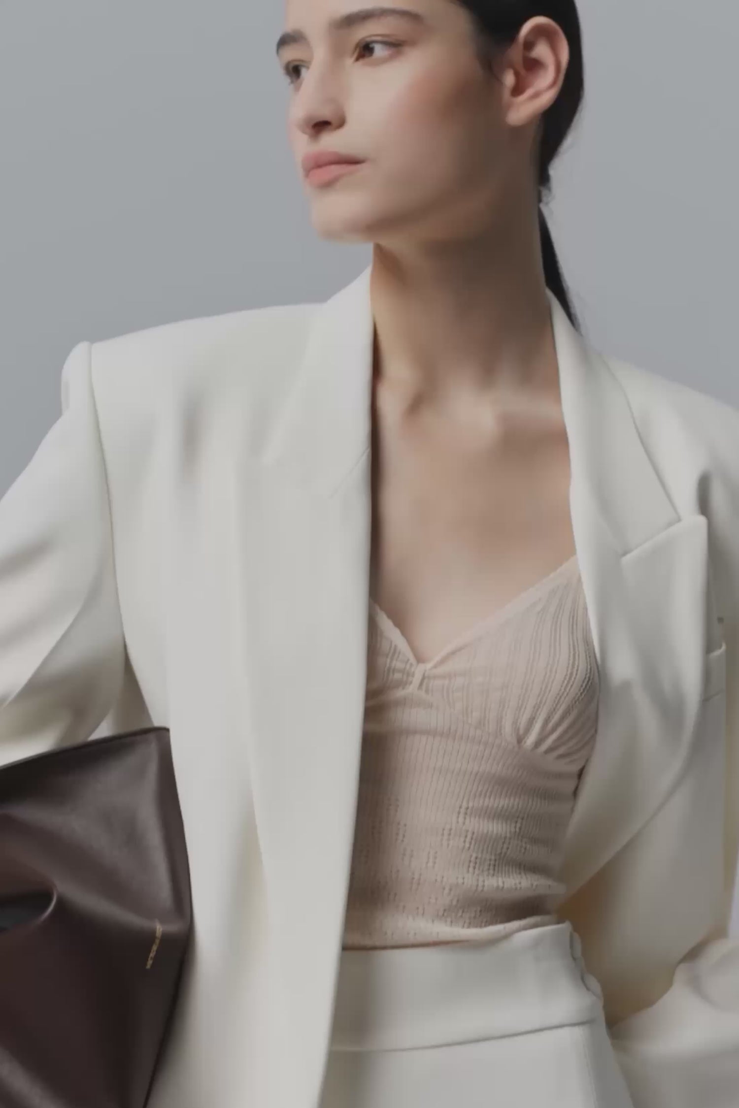 A tactile twill fabric and thigh-high split bring a sensuous undertone to the Split Detail Skirt. Fully lined with front and back dart detailing, it is presented in romantic Ivory for a feminine counterpoint to the sexy silhouette.