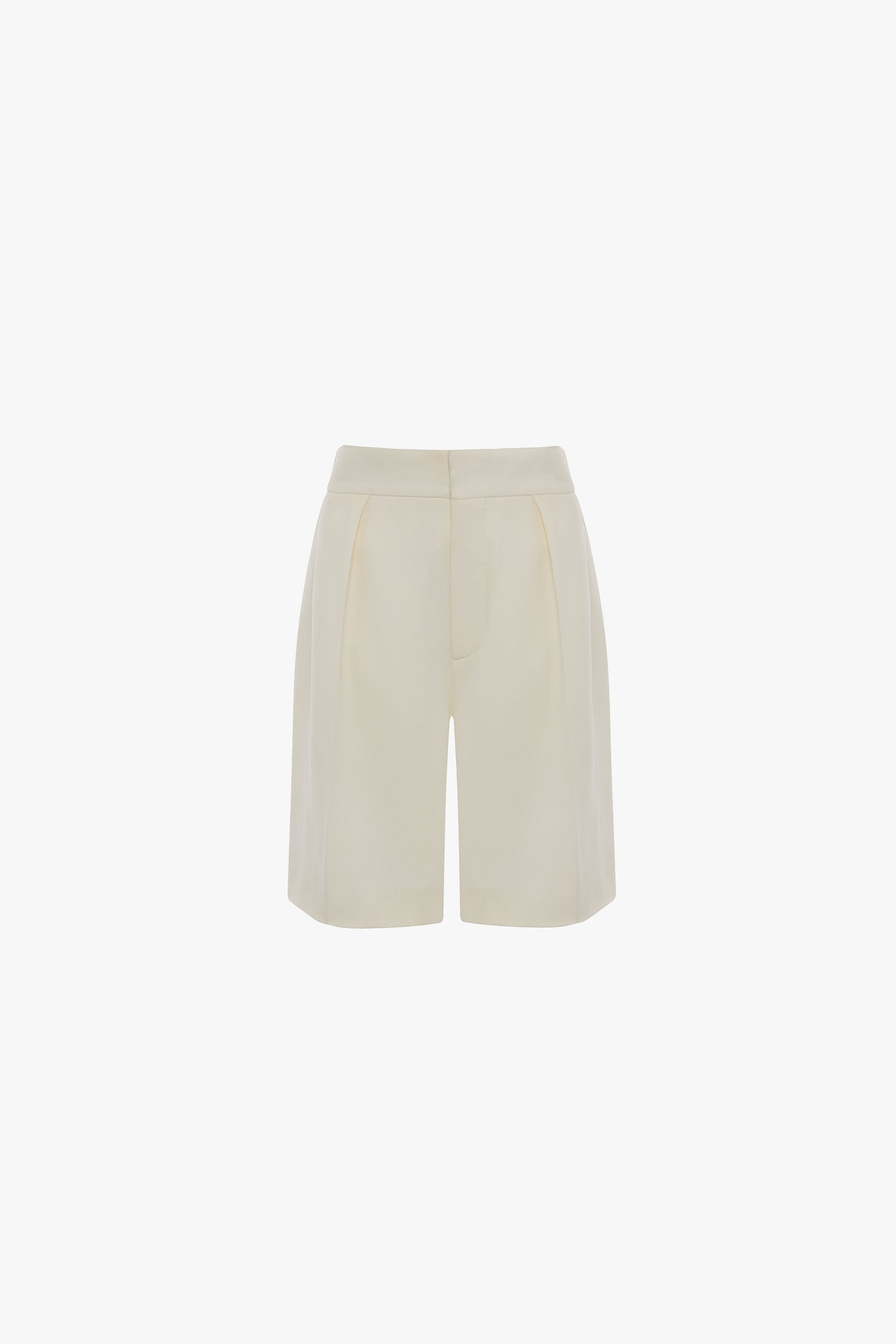 Masculine tailoring is given a feminine twist in these recycled fluid wool Tailored Shorts in nostalgic Ivory. A mid-rise waistline, knee-length hemline and front leg pleats create a sophisticated silhouette, while side seam pockets and back jet pockets keep the look pared-back and polished.