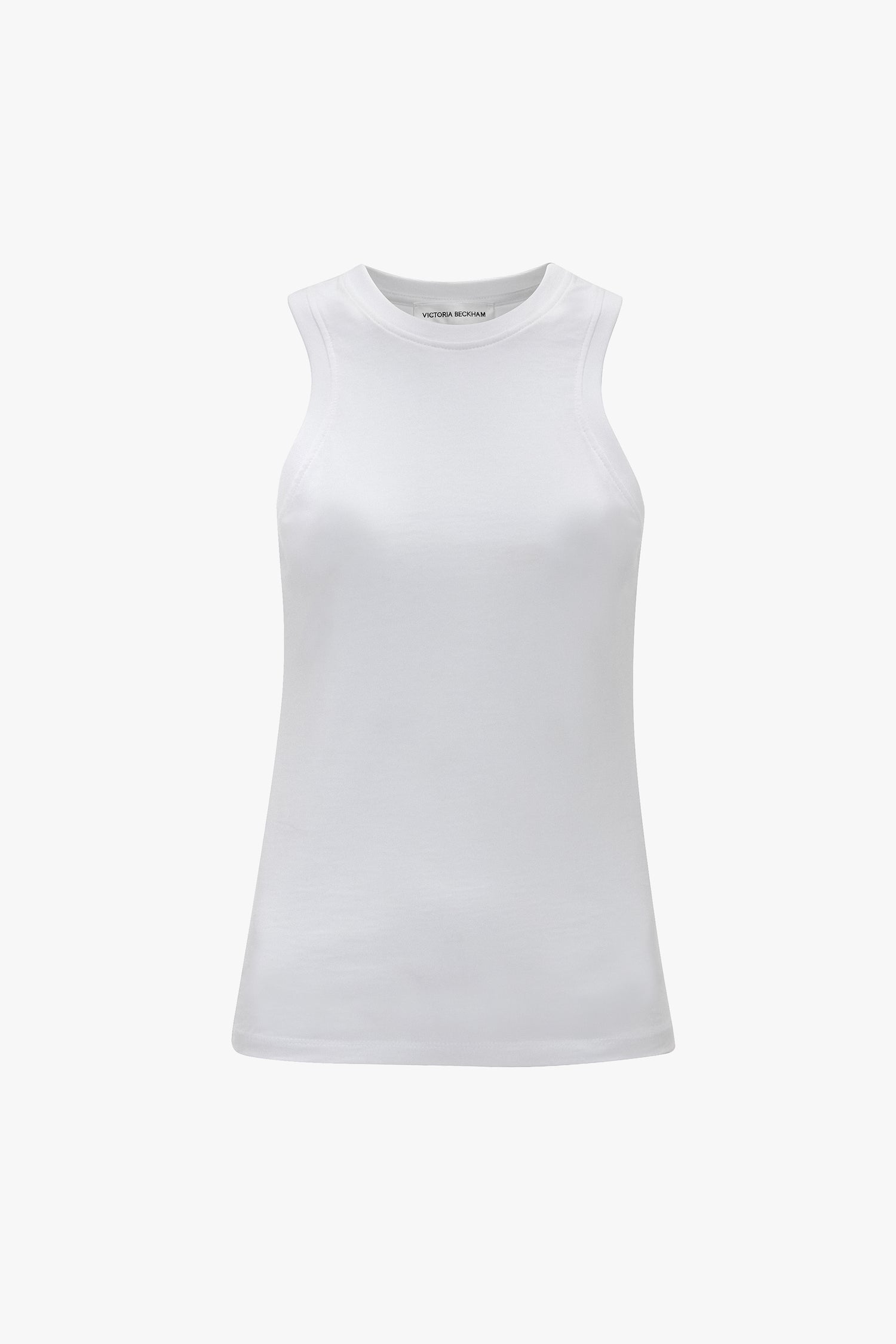 A foundational piece in any wardrobe, the Tank Top in White is made from super-soft 100% organic cotton with a ribbed neckline and armhole trims. A relaxed racer-back design brings an athleisure-inspired nonchalance to the piece, while a contrasting Victoria Beckham monogram at the centre back neckline adds an elevated finishing touch.