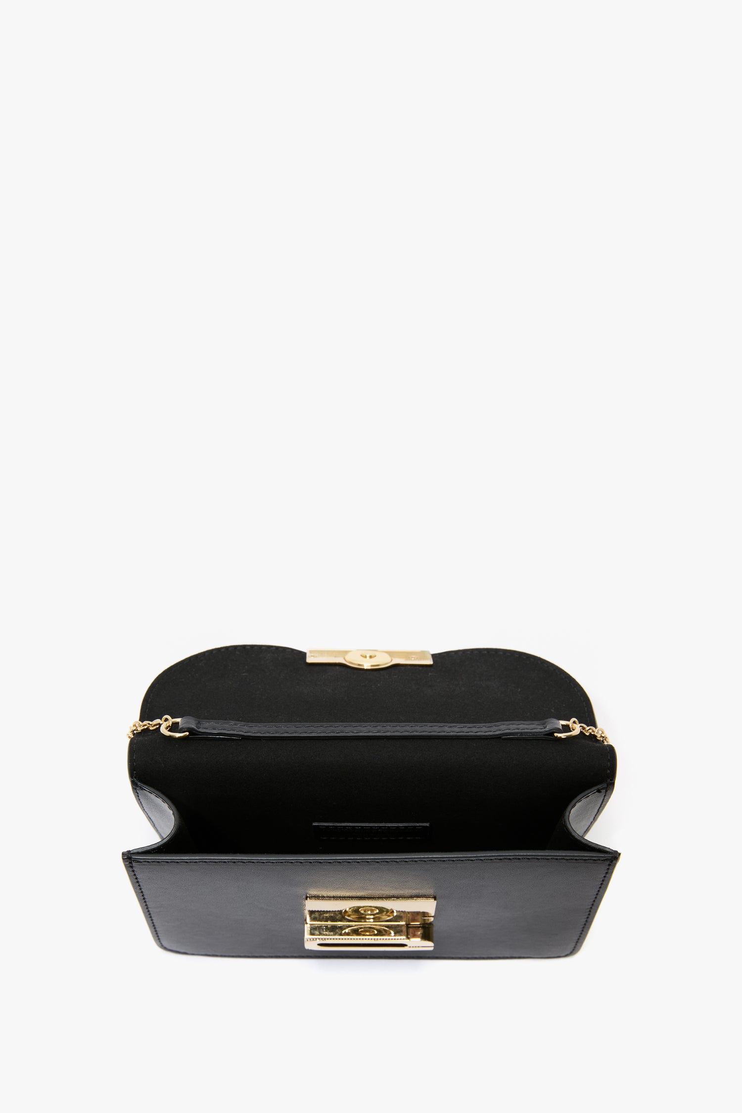 Part of the micro volumes series, a range of miniature bags designed to store small essentials such as keys, cards and lipstick, the Nano Dorian Bag With Chain in Black is crafted from smooth calf leather and features an elegant gold chain and leather strap. Showcasing the house’s signature gold B Buckle hardware, it is stamped with the address of Victoria’s London studio (N.202) followed by a unique serial number. Microsuede lining and a single internal compartment complete the look.