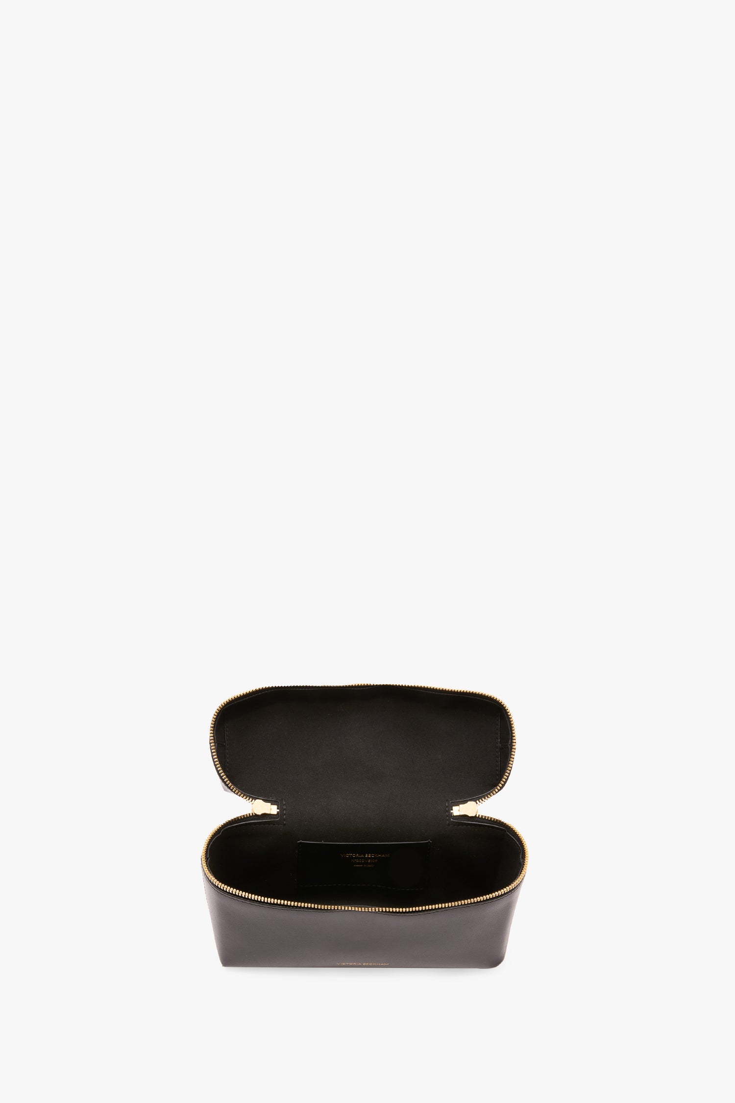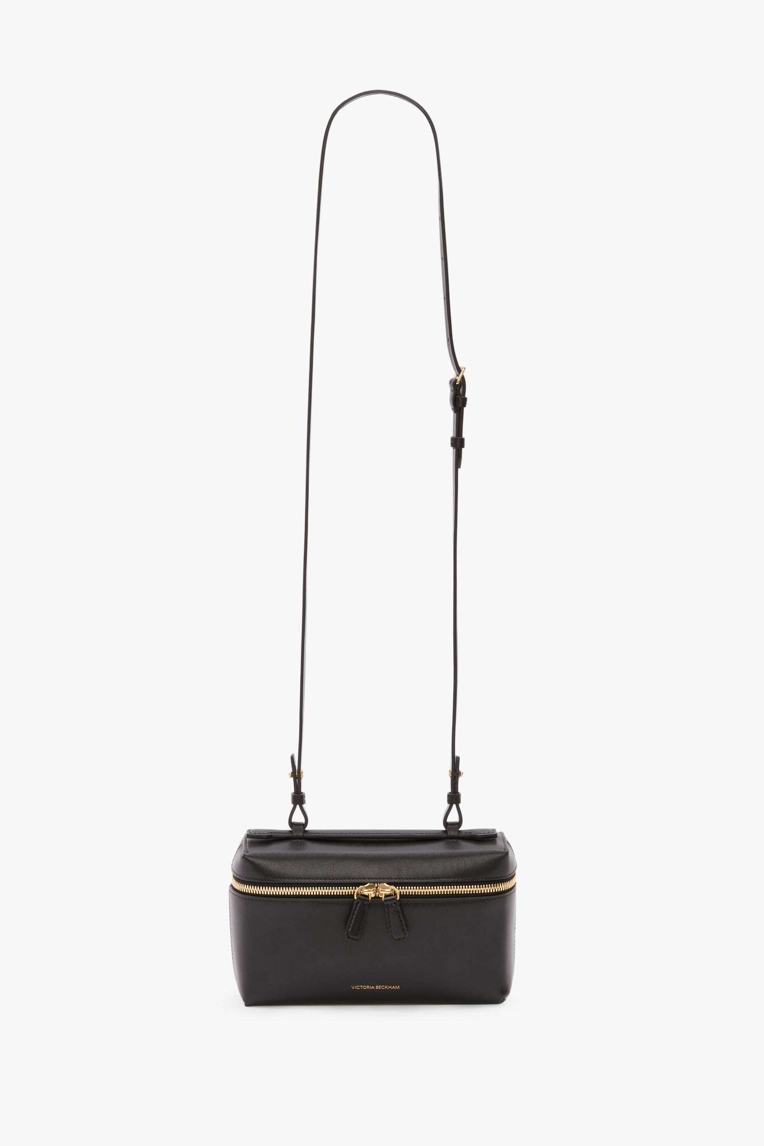The dual purpose Vanity Crossbody cleverly combines practicality and polish. Crafted from 100% shiny calf leather, it has a top handle and removable crossbody strap for versatile use. plus an internal flat pocket and zip closure for secure storage. Microsuede lining adds a tactile finishing touch.