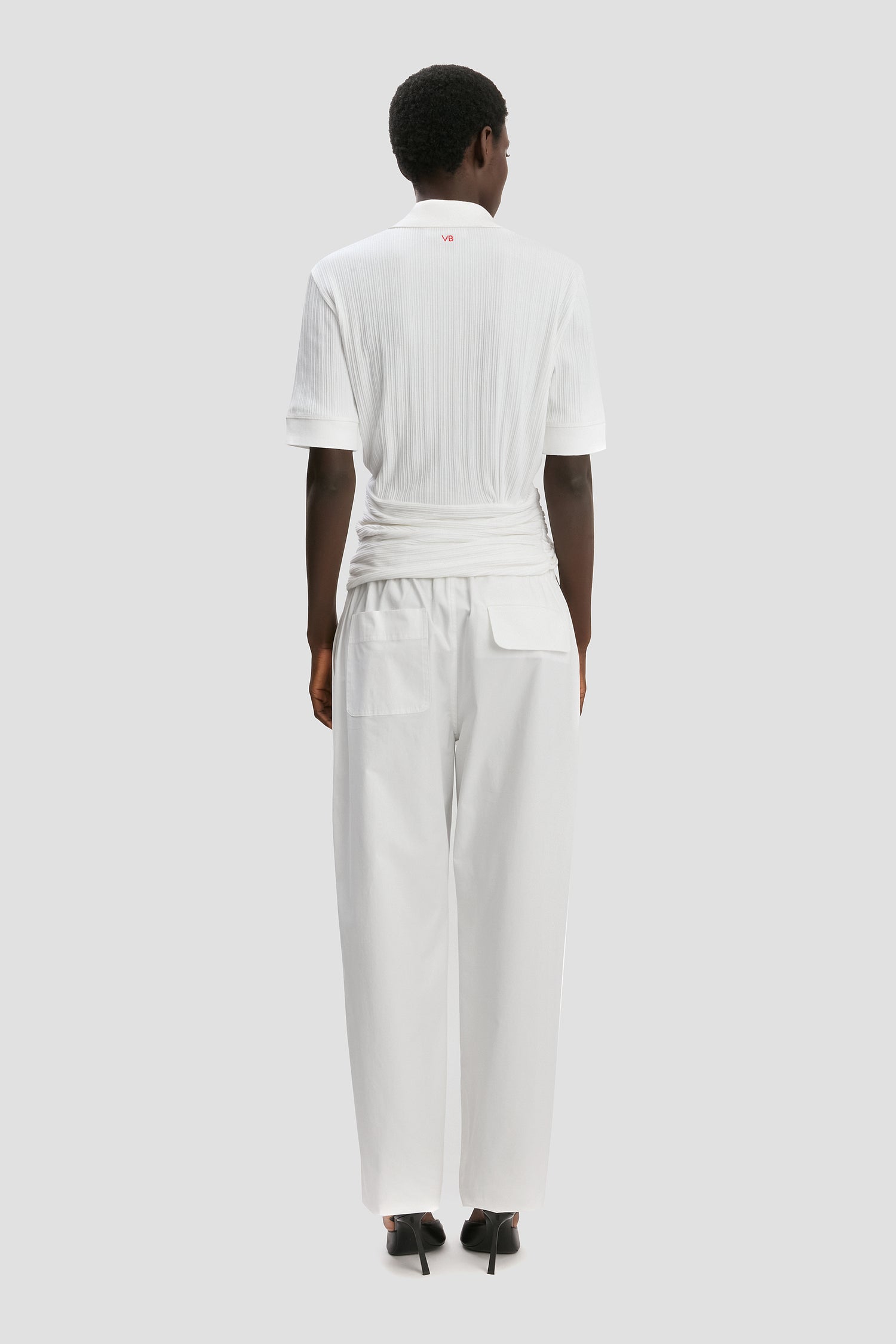 The classic polo top is reimagined with a tactile twist detail and asymmetric cut at the hemline. Crafted from organic ribbed cotton, the Twist Detail Polo Top in White has a traditional polo collar with buttons and is finished with an embroidered Victoria Beckham monogram at the centre back neckline.