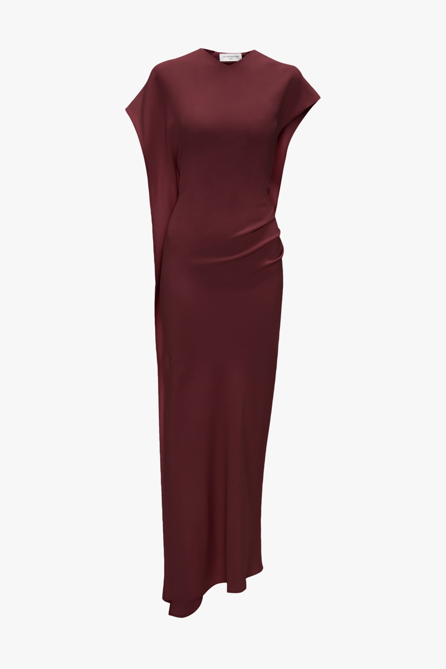 A favourite of Victoria's, the Victoria Midi Dress marries feminine design codes with contemporary flair. Distinctive draped sleeves and a back split asymmetric hemline bring an elegant fluidity to the silhouette, while tactile front and back waist pleating adds a sensuous undertone.