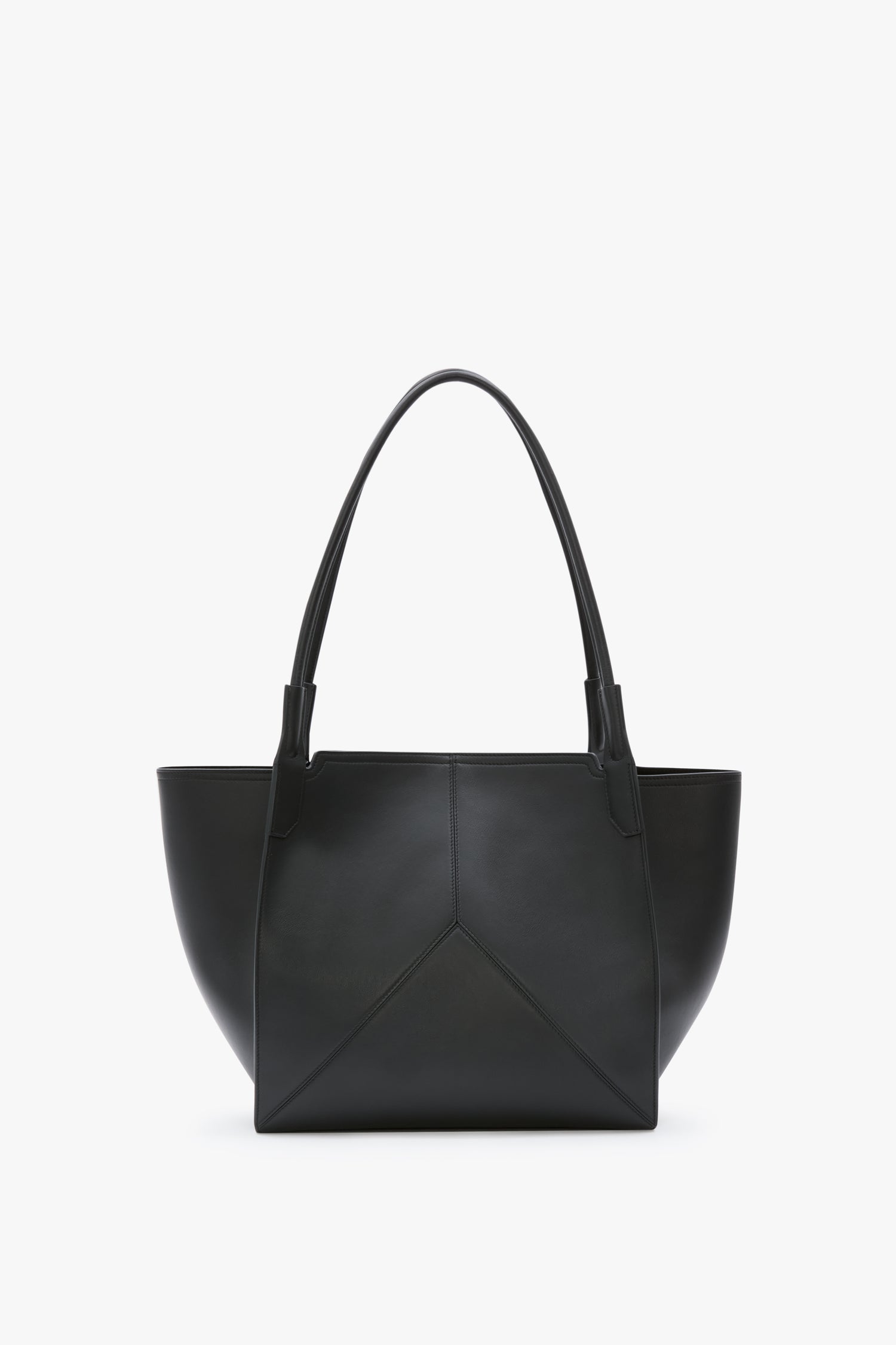 A diminutive alternative to the house’s Victoria Tote, the Victoria Tote Bag in Black leather is crafted in Italy from smooth calf leather and designed with an unstructured silhouette and minimal hardware. Discreetly decorative V-stitched panels reflect the house’s signature restraint, while a tonal suede lining adds a tactile finishing touch. An internal flat pocket ensures secure storage.